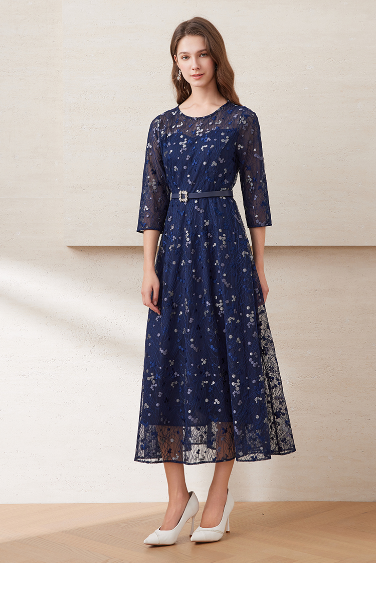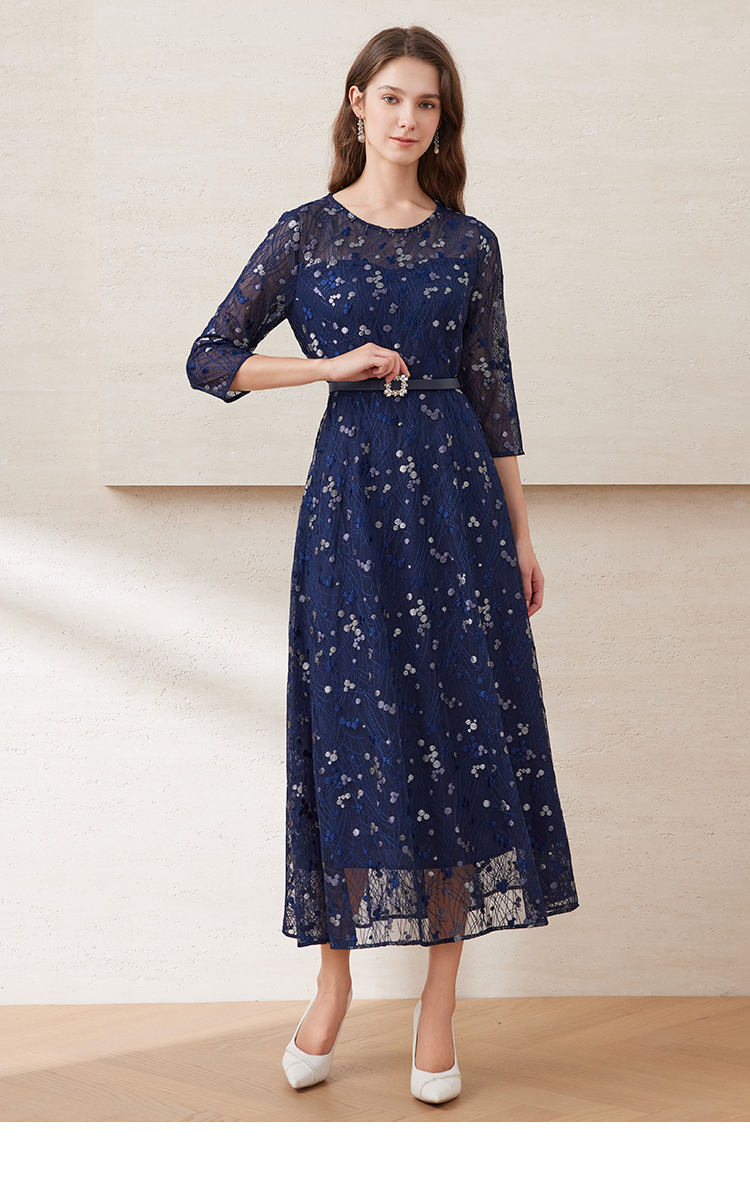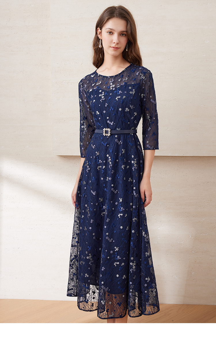 EITIE爱特爱夏季新款薄纱透视修身显瘦蕾丝礼服连衣裙7877509