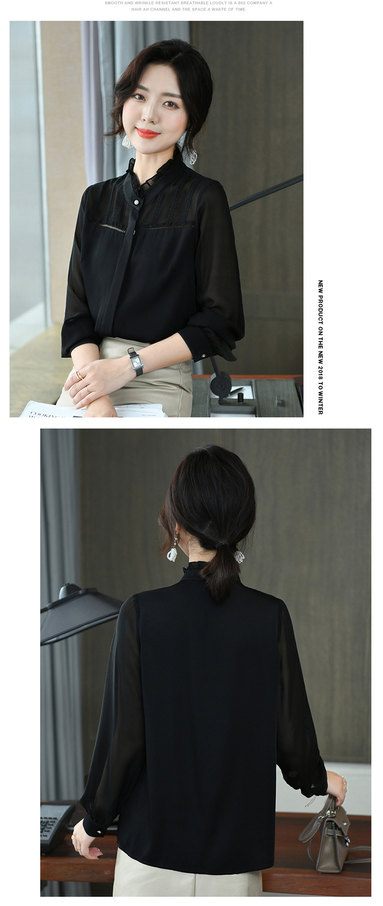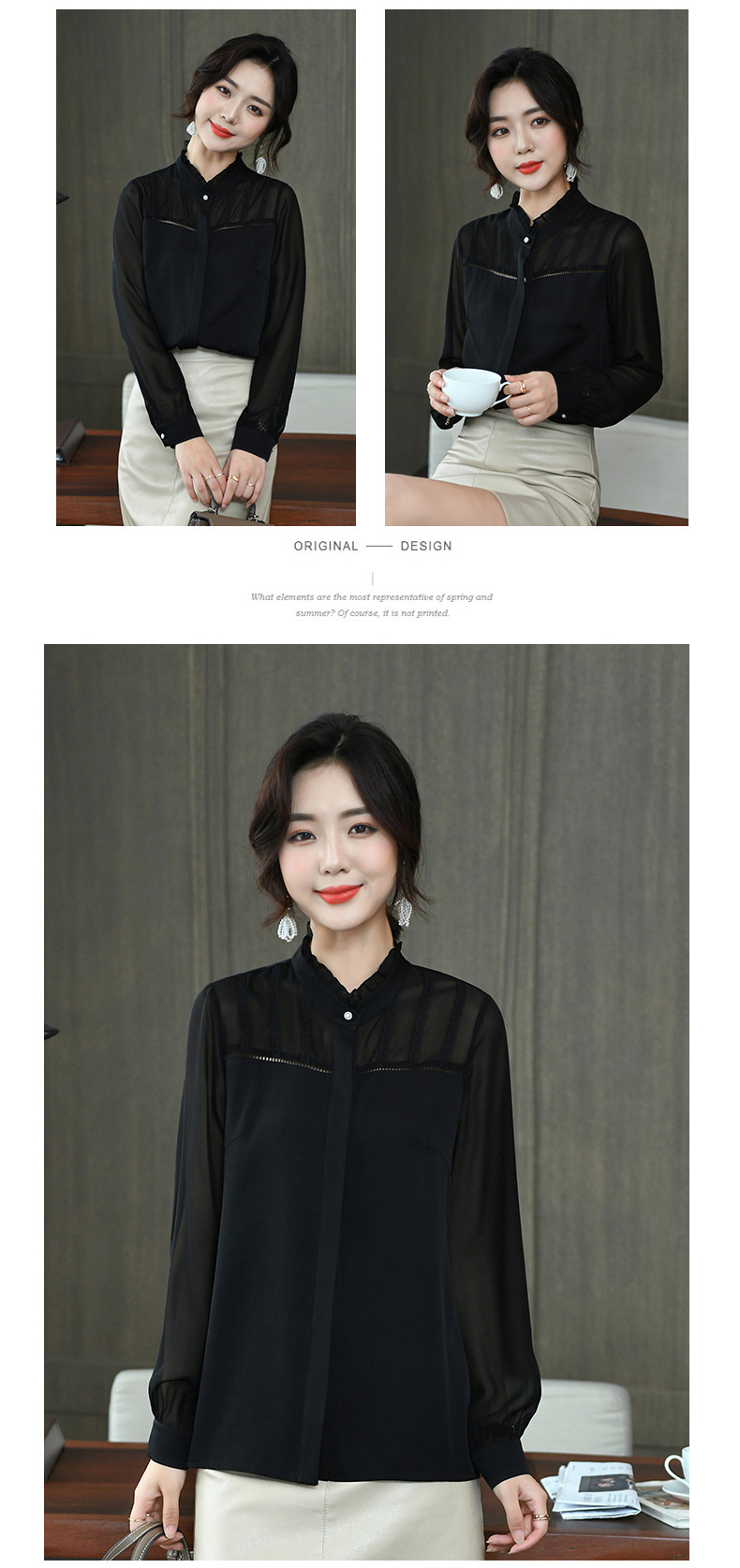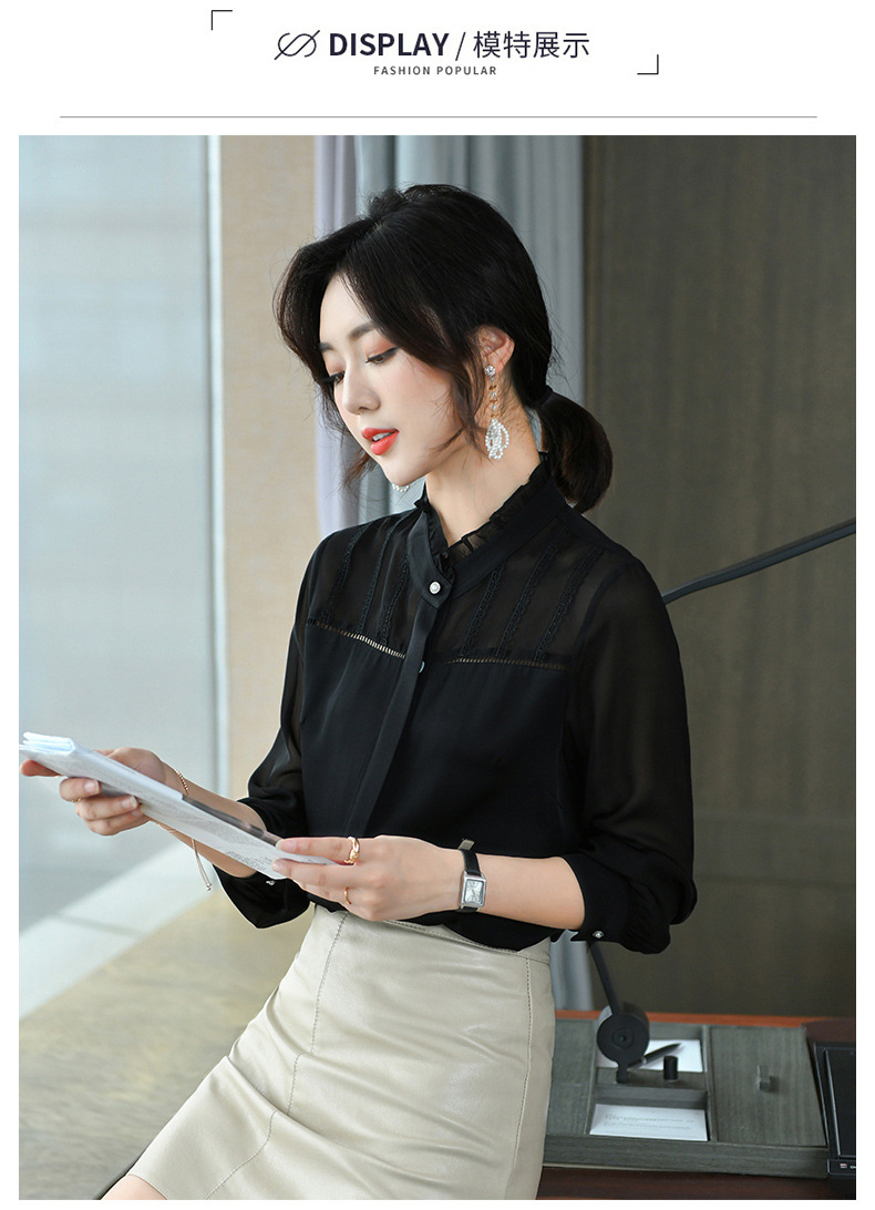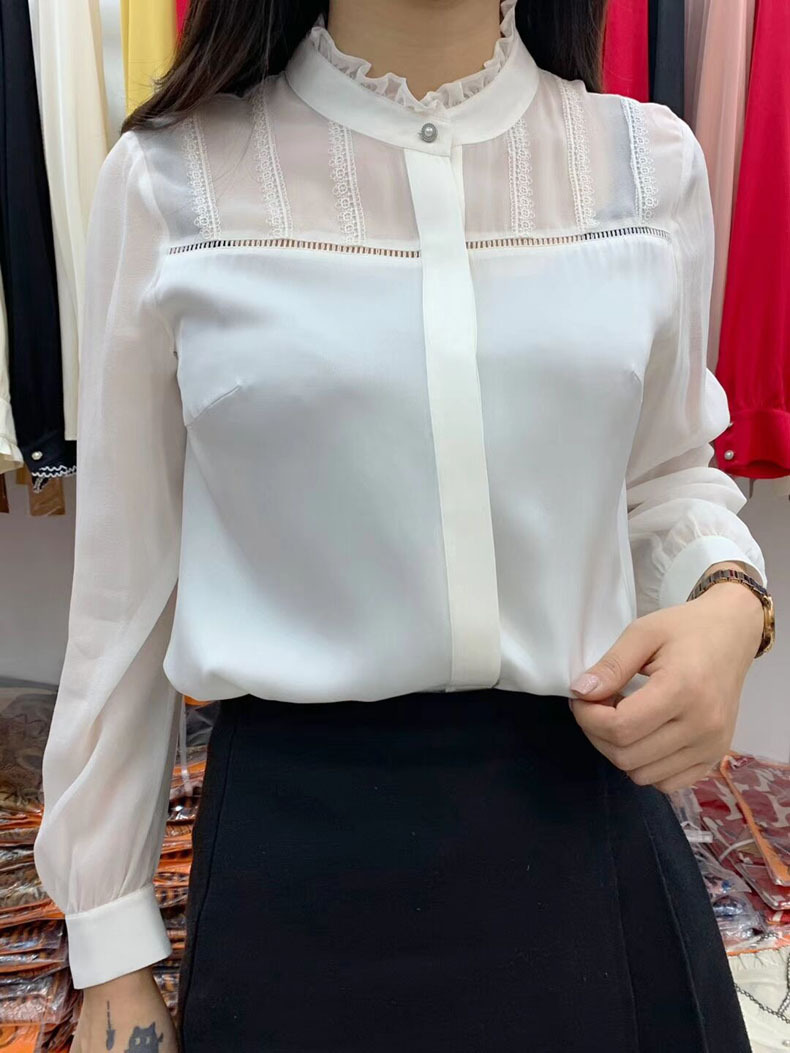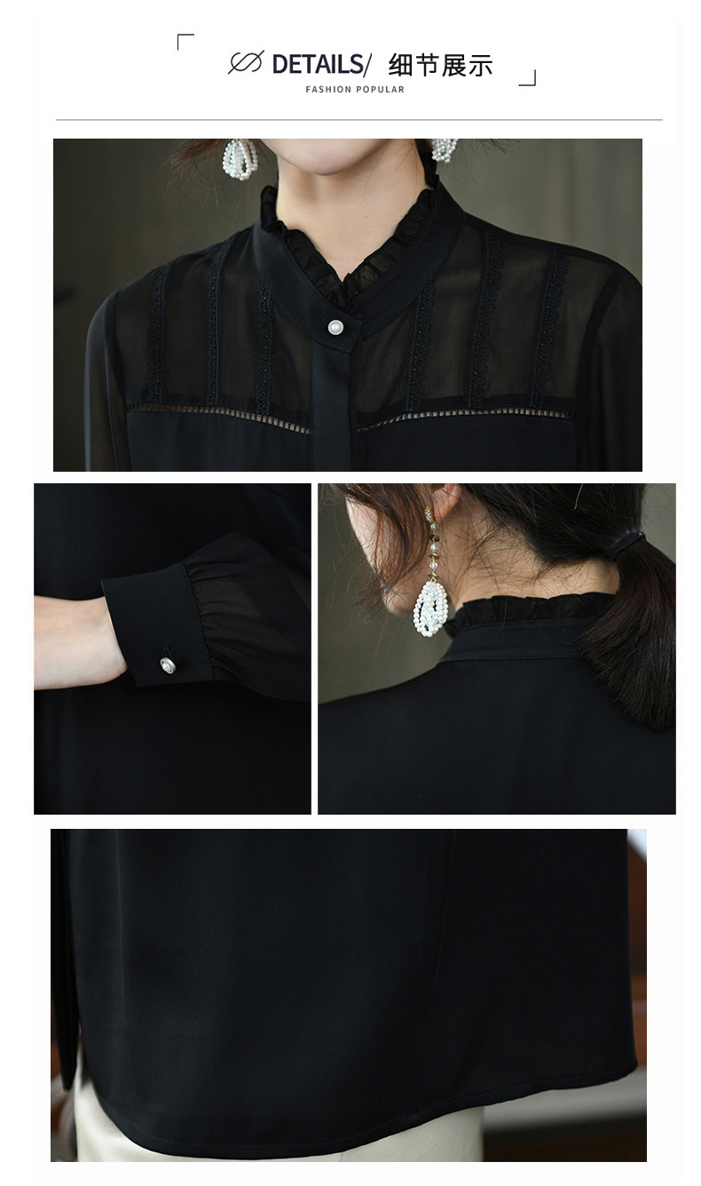 KQL-260031春季新款花边立领长袖设计感小众职业桑蚕丝上衣