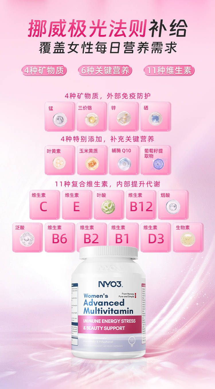 【1瓶/2瓶】NYO3诺威佳官方旗舰店女士多种复合维生素60粒/瓶 A-3080