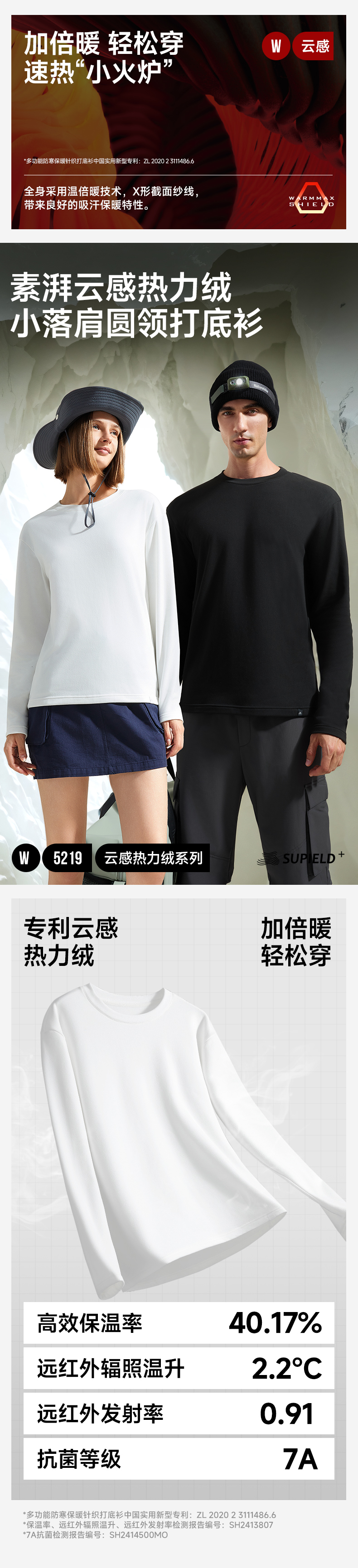 Supield云感热力绒保暖打底衫T恤男女款7A抗菌防静电吸湿排汗