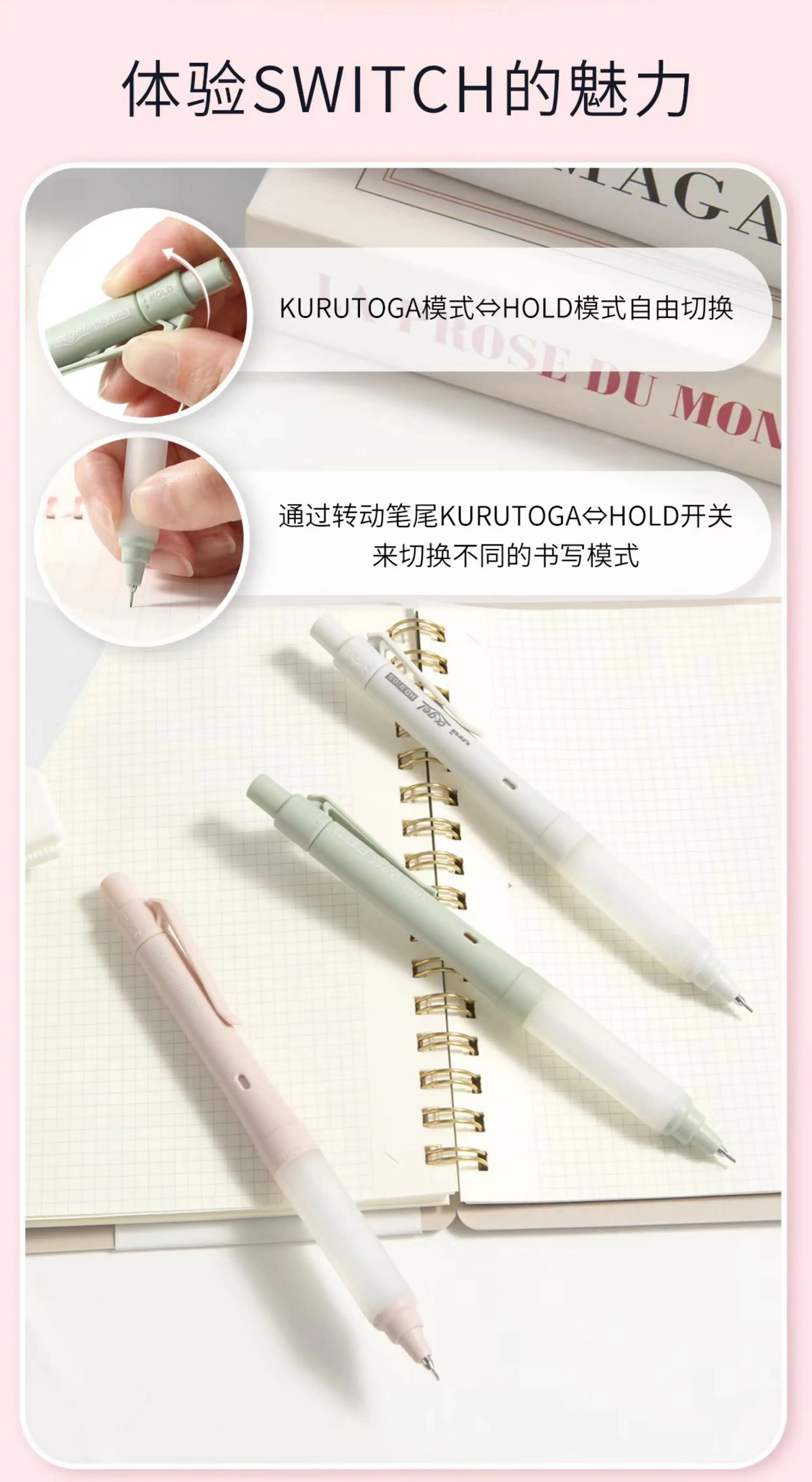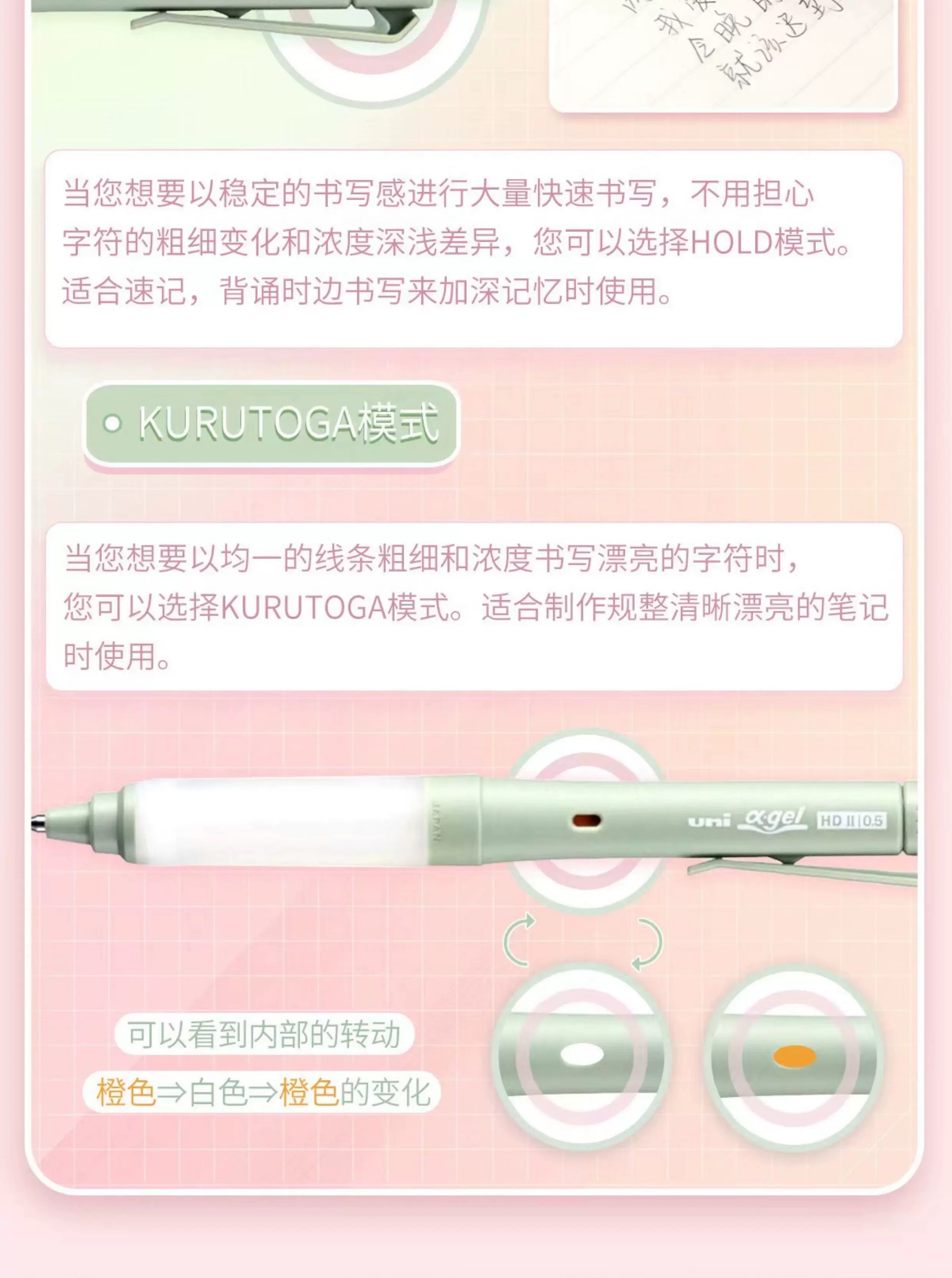 日本三菱UNI柔和色系防疲劳双模式自动笔0.5mm