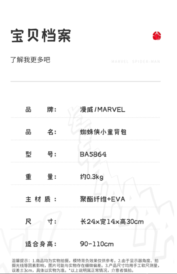 【2022开学季】迪士尼(Disney)儿童书包幼儿园蛋壳造型卡通男孩书包 3-6岁宝宝蜘蛛侠书包 BA5684A