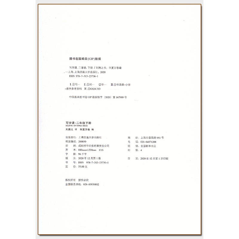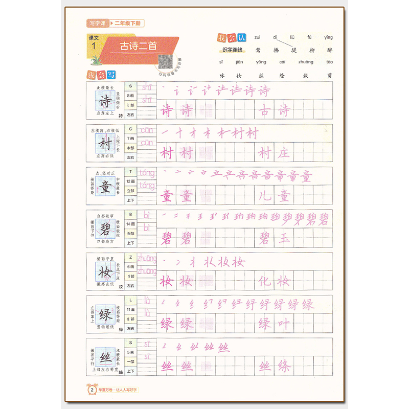 2021新版 华夏万卷小学生同步写字课 正楷 刘腾之书 二年级第二学期/2年级下 部编人教版语文同步字帖 小学语文教材配套同步字帖