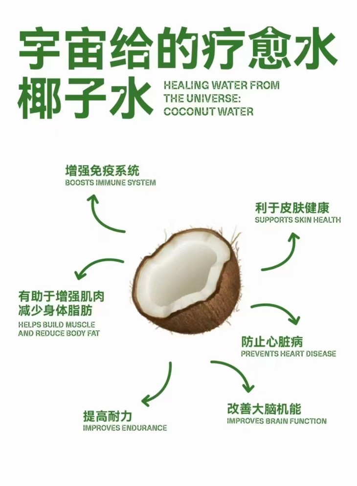 这对于维持身体的正常功能非常重要! 特别是喜欢运动的人,如过度运动、过度出汗等情况下 大量失去电解质需要及时补充❗ 此外,椰子水⤴还富含多种微量元素,如铁、锌、铜等 这些微量元素对人体的健康都至关重要!