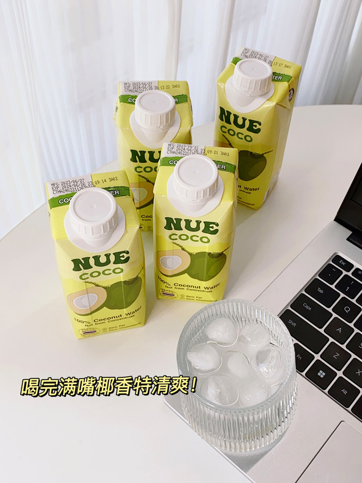 【NUE纽尔可可椰子水】堪称饮料界清爽白月光 每喝一口都犹如一阵带着椰香的清风 唤醒了劳碌工作时昏昏沉沉的脑袋 甜感清透自然,让人浑身愉悦,特别轻盈