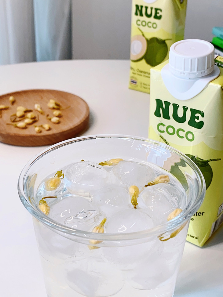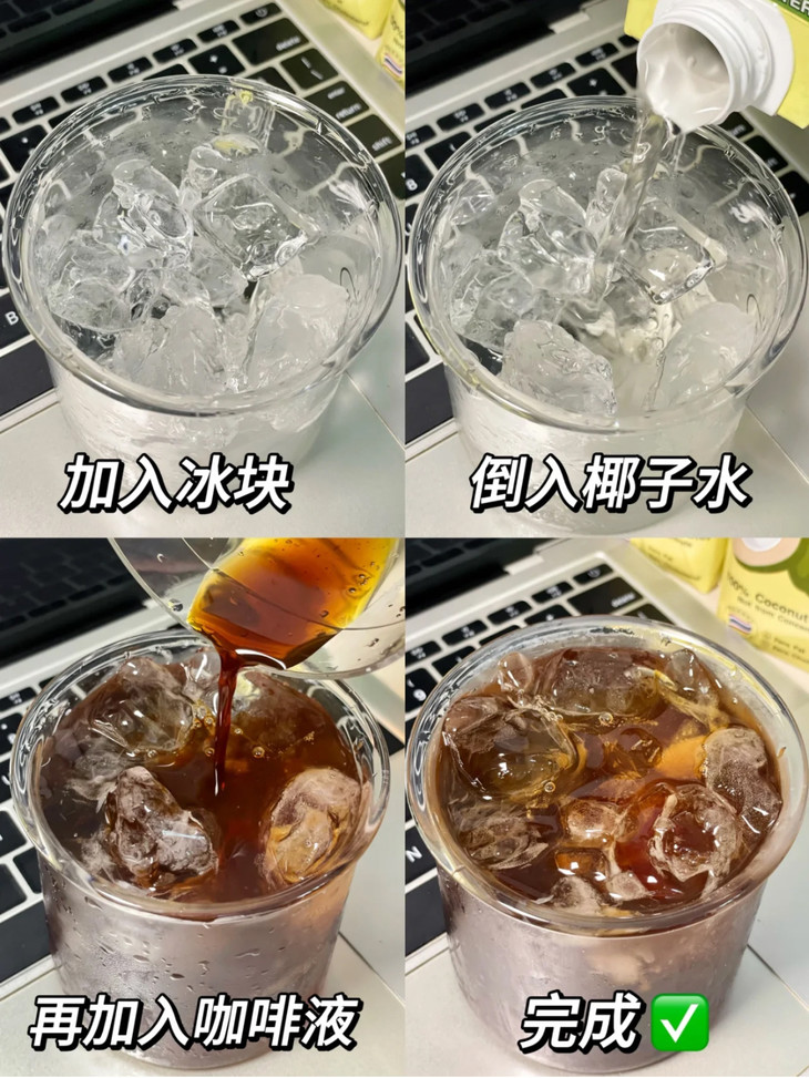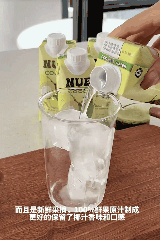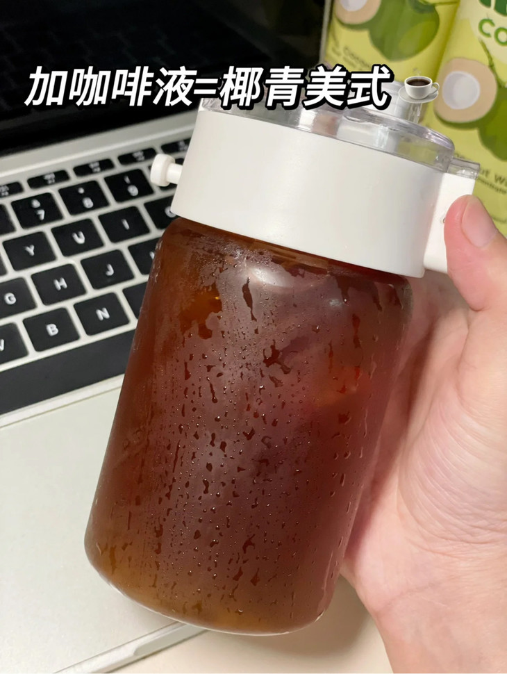 平时一杯30多块的椰青美式 有了【NUE纽尔可可椰子水】在家就能做 倒进杯子🥃加上咖啡液,提神醒脑!