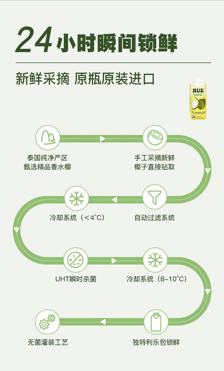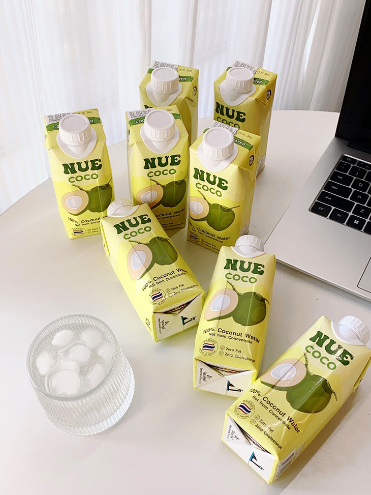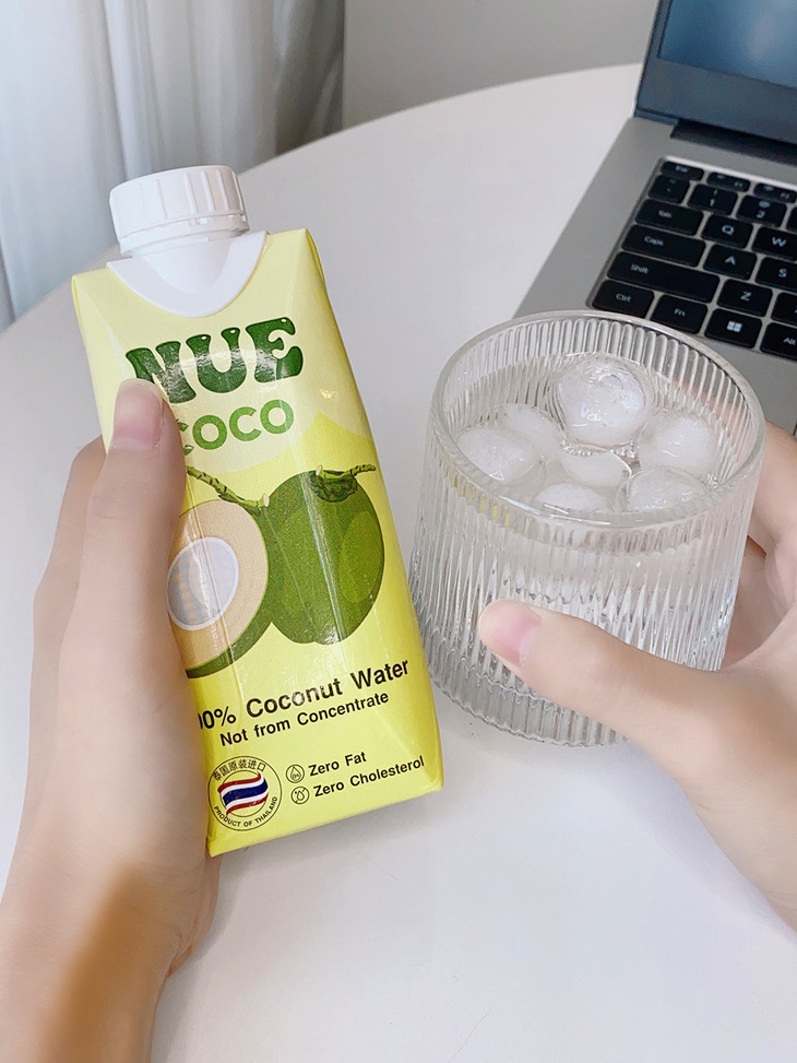 【NUE纽尔可可椰子水】是原装原瓶进口 开椰取汁、过滤、无菌冷灌装以及UHT瞬时杀菌工艺等步骤 都是直接在原产地泰国🇹🇭完成的 锁住了香水椰绝妙诱惑的口感😋,完整保留了100%椰子水🥥的原汁原味