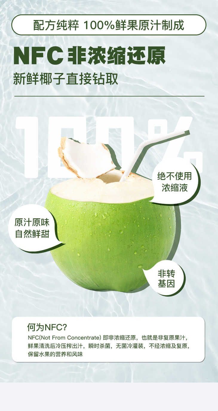 第一次喝这款椰子水🥥可能会刷新你的认知 采用NFC非浓缩工艺,可以常温保存 且口感新鲜度一点也不输当地采摘青椰子 不含人工糖分,汁水清澈,甘甜可口,当随餐饮料也很合适