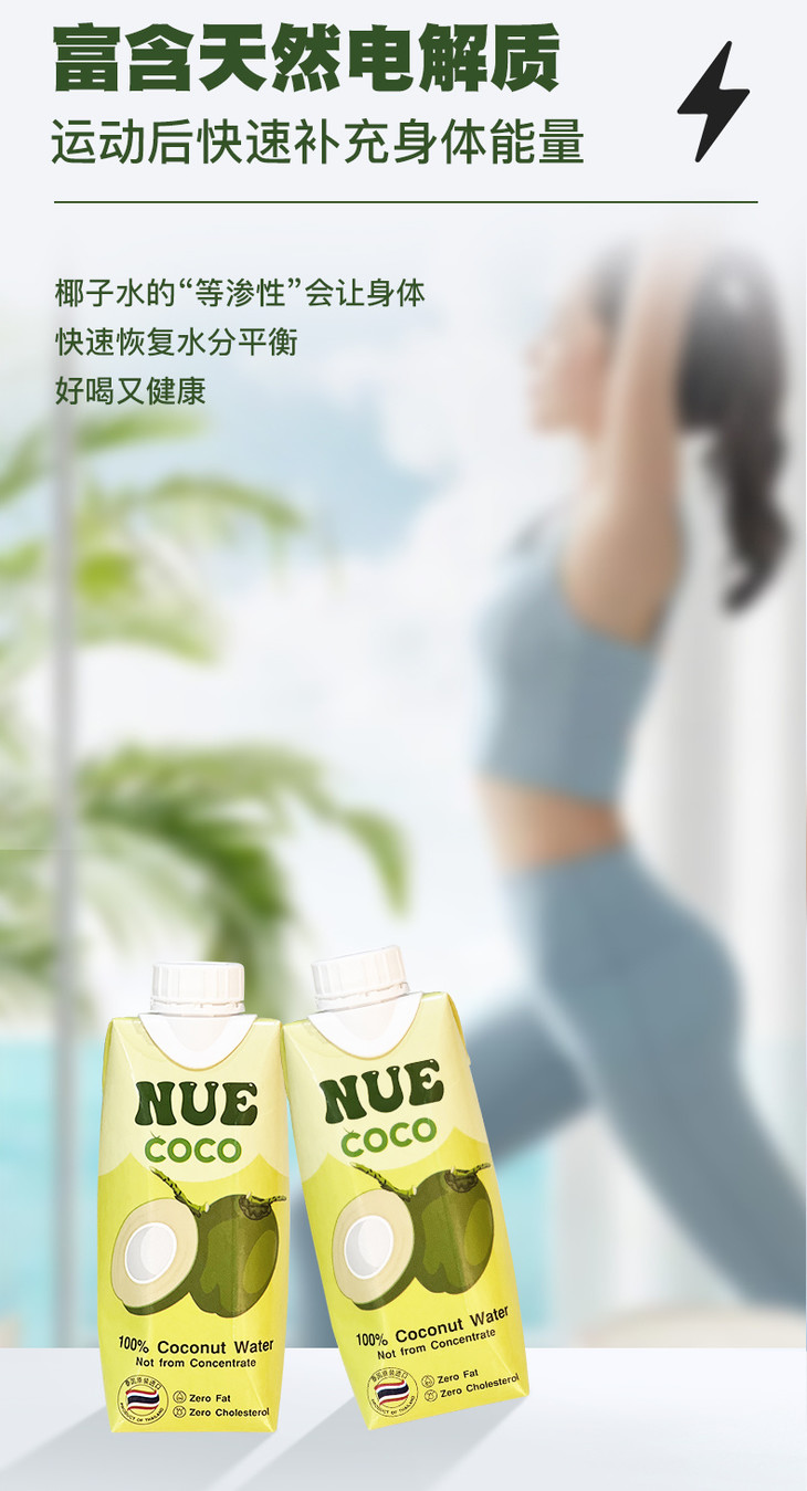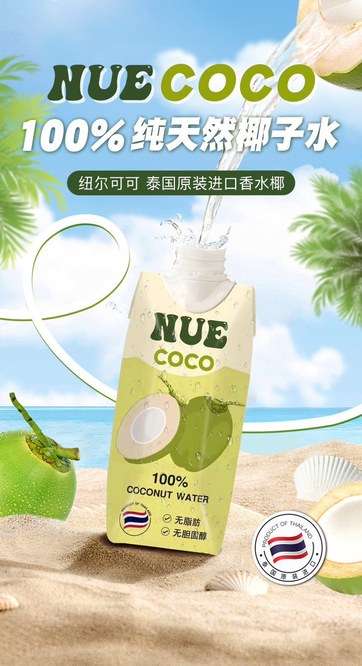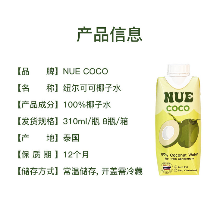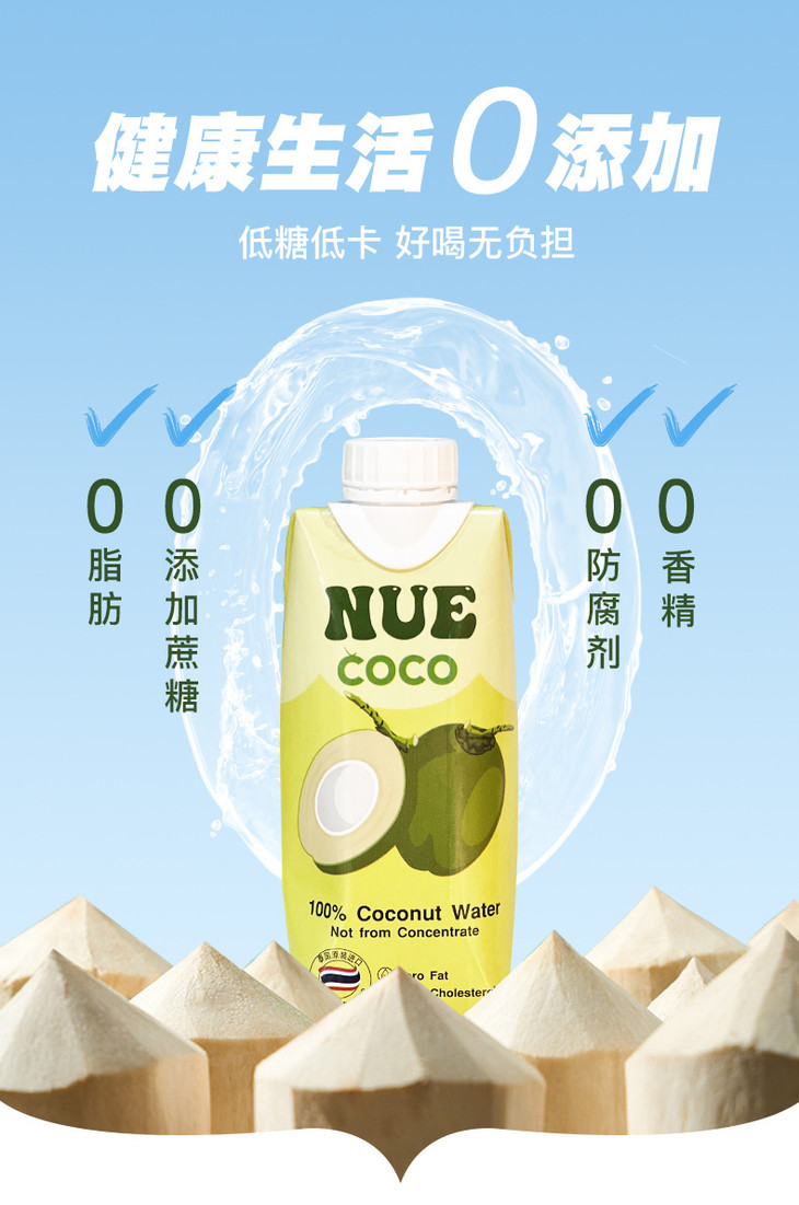 比泰国🇹🇭现开的还好喝!【NUE COCO纽尔可可椰子水】泰国进口,非浓缩还原,100%鲜果原汁🥥随时喝到椰林小清新~ 大自然唯一天然电解质水清甜解渴秒补水⤵调节体液平衡!低糖低卡,不易胖的小甜水!