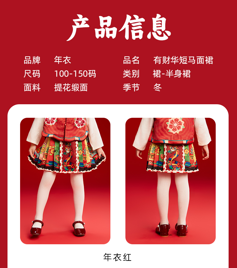 年衣童装女童冬季新款马面裙半身裙古装儿童汉服唐装中式公主裙子有财华短马面裙