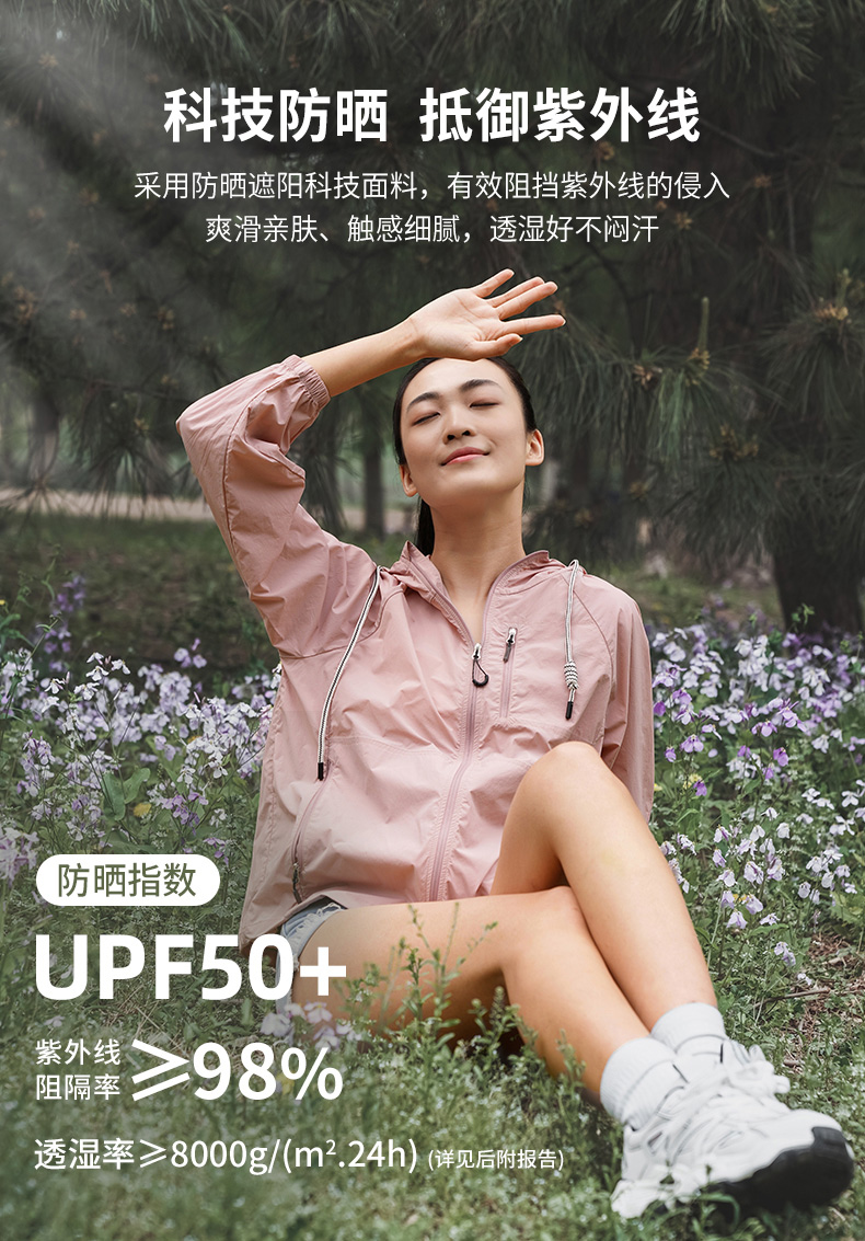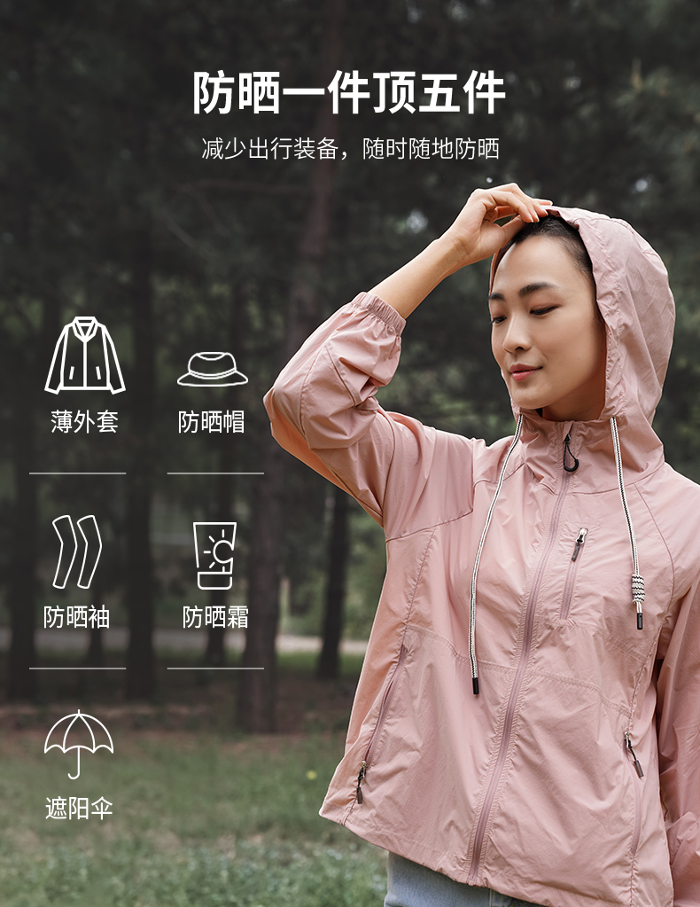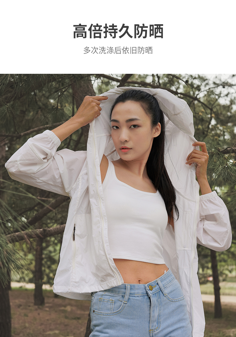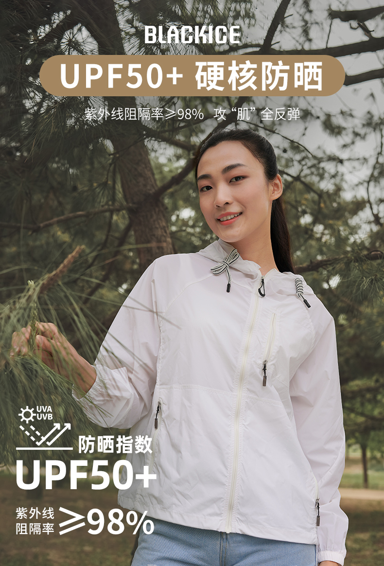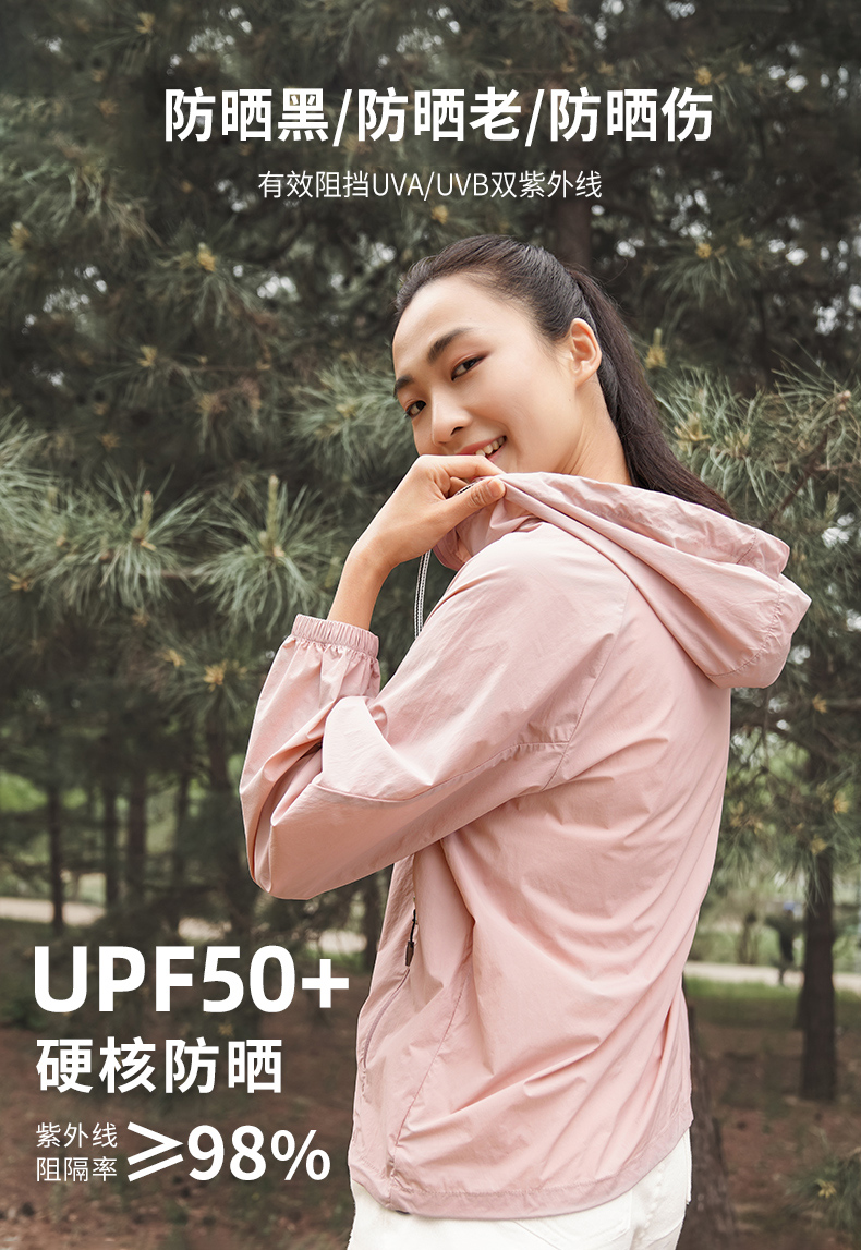 夏季新品黑冰户外防紫外线防晒衣女 UPF50+连帽抽绳防晒服2005F