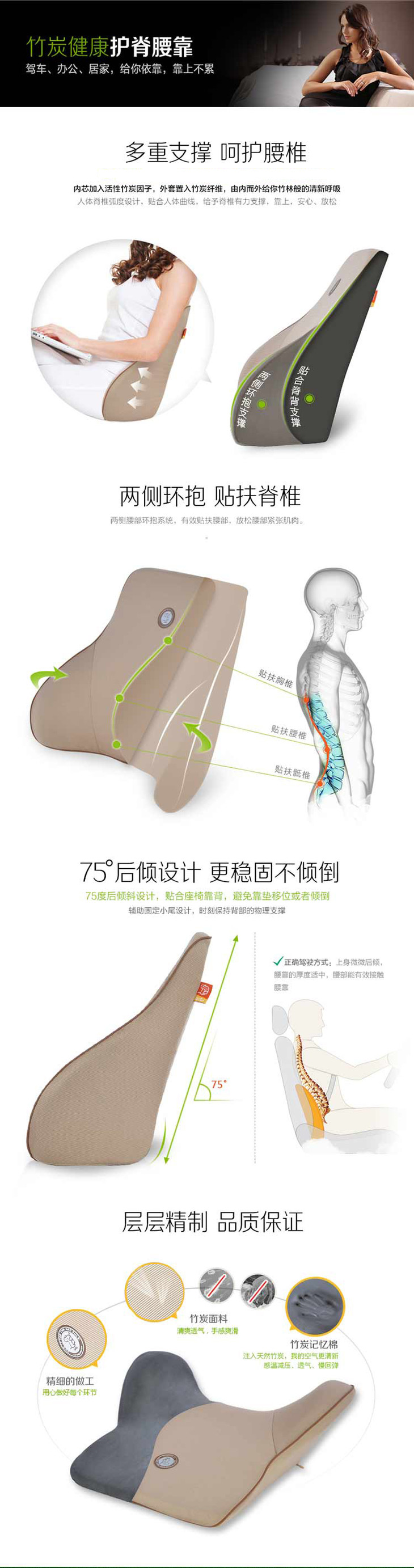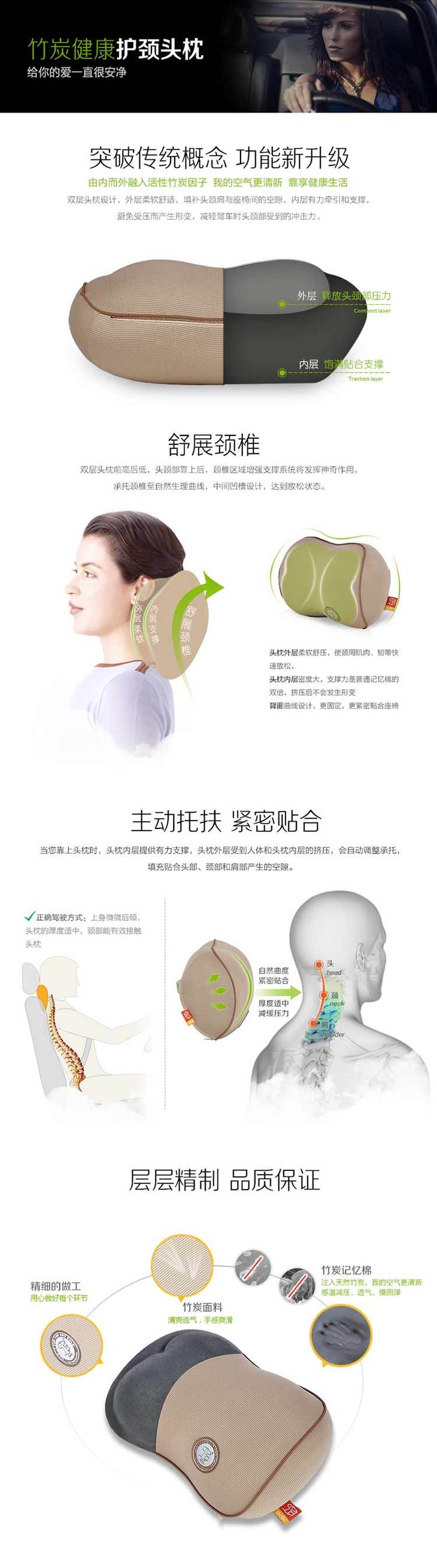 GiGi G-1335+G-1336汽车竹炭记忆棉健康头枕颈枕腰靠垫套装2件套