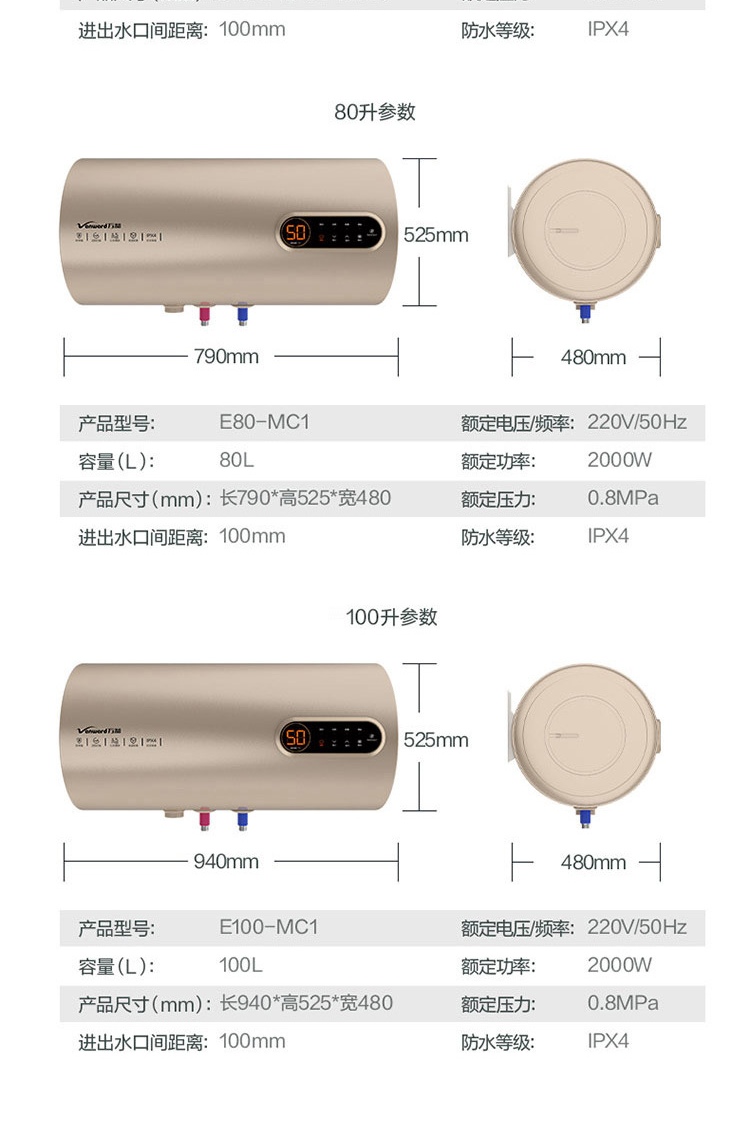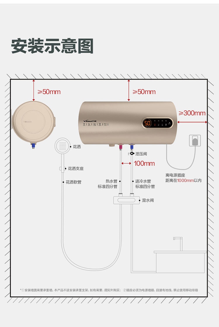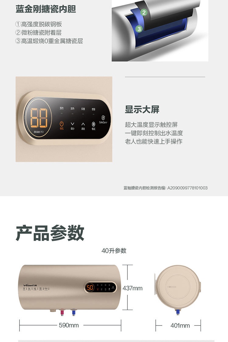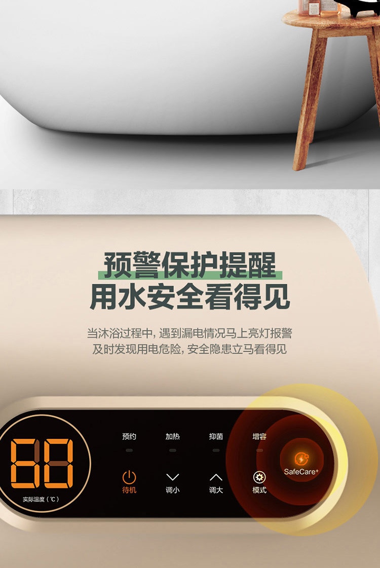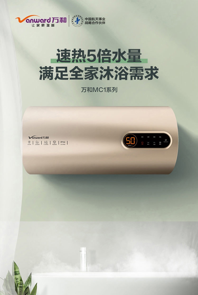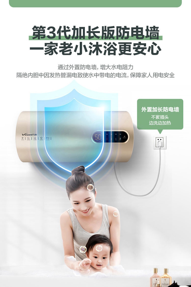 万和 60升 电热水器 双防电盾 自动断电 一键智能预约 8重安全防护E60-MC1