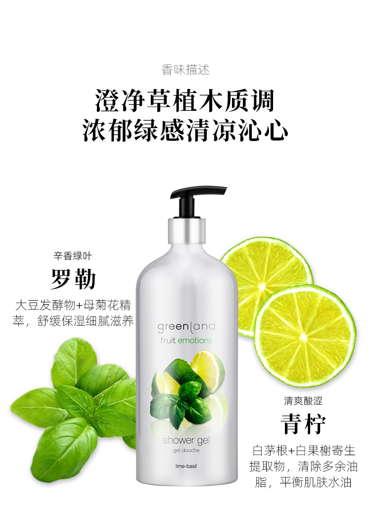 格兰大地青柠罗勒香沐浴露男女留香保湿滋润600ml