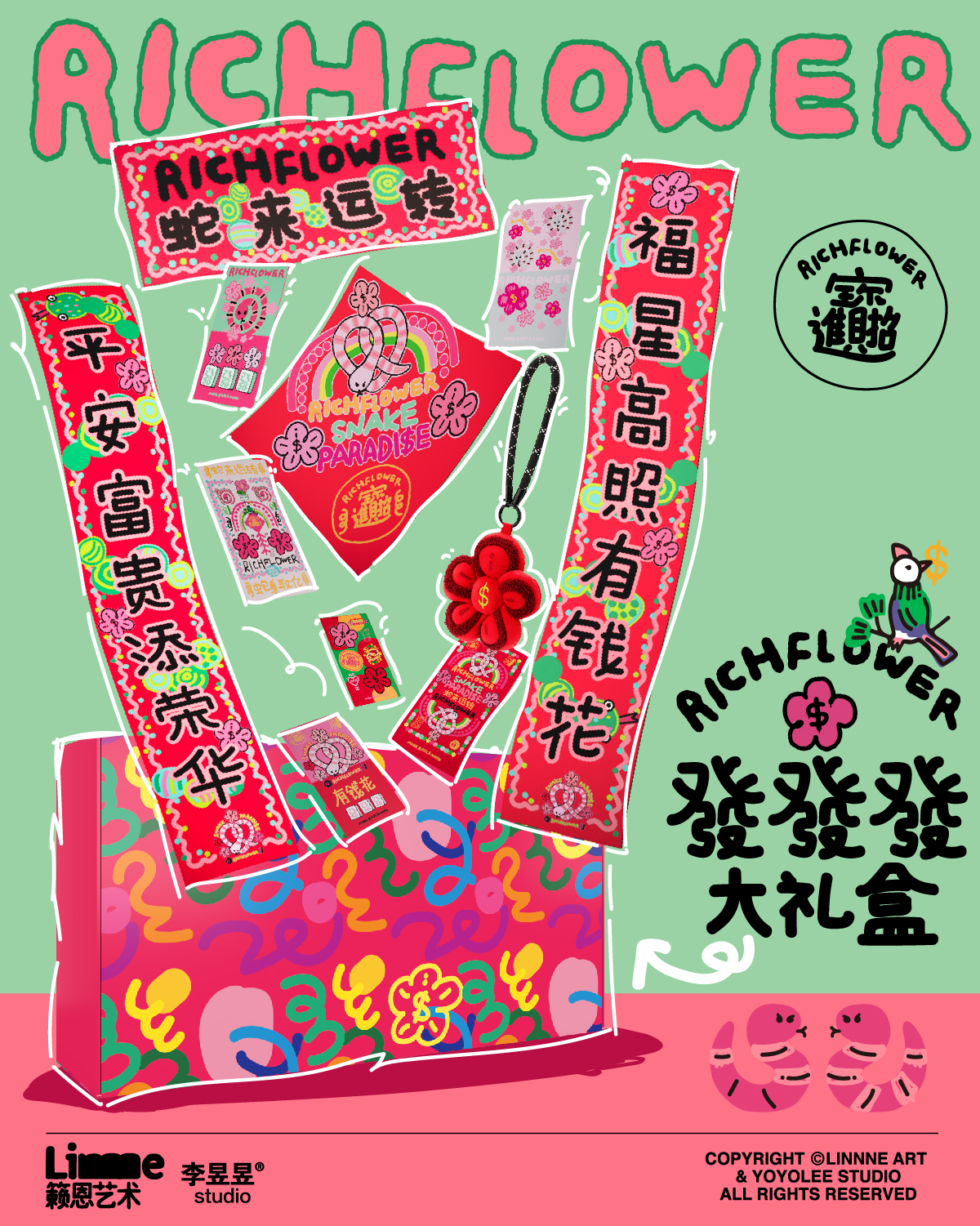 有钱花/Rich Flower 「发发发大礼盒」春节大礼包对联春联福字贴红包挂件送礼