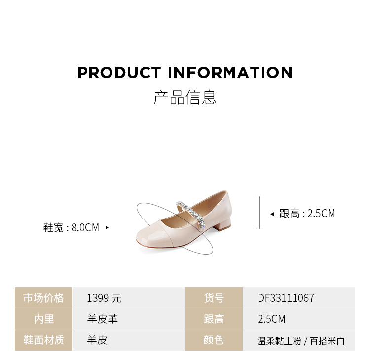迪芙斯D:FUSE女鞋秋款单鞋女玛丽珍鞋羊皮圆头钻链低跟女鞋DF33111067