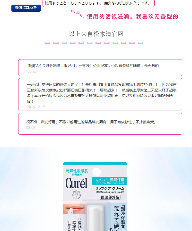 【中欧班列精选】日本Curel珂润滋润保湿唇膏4.2g BF