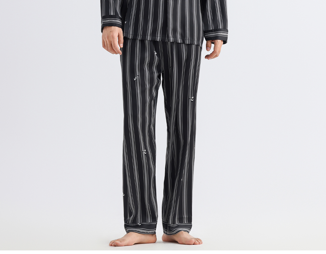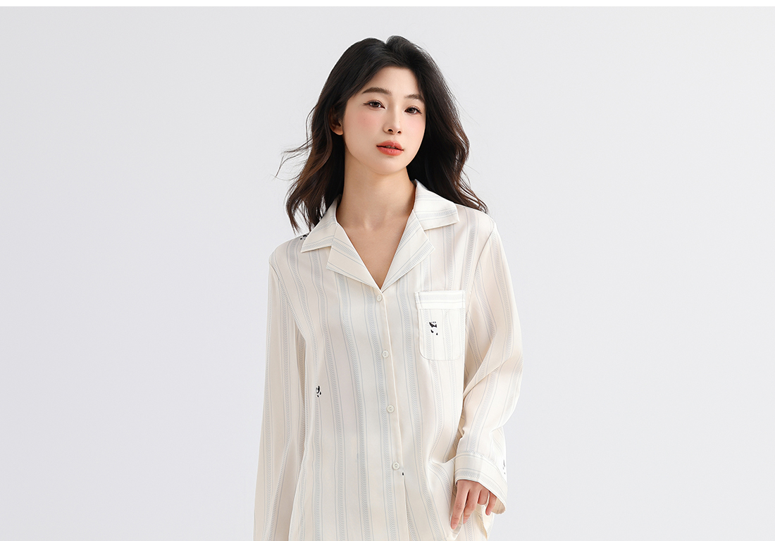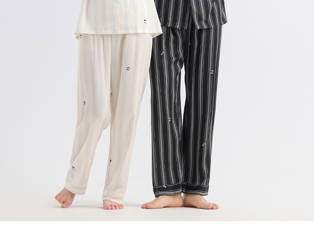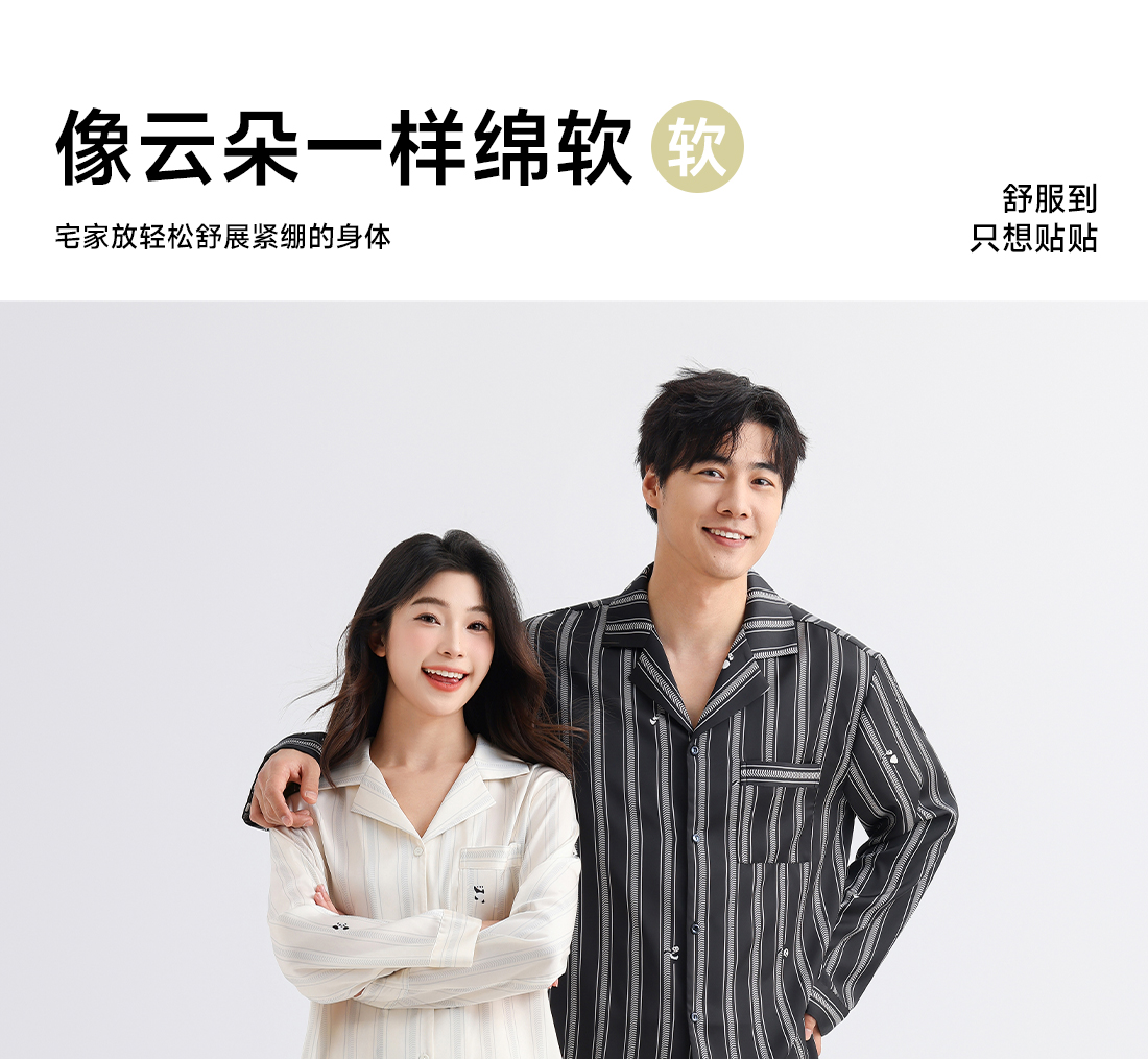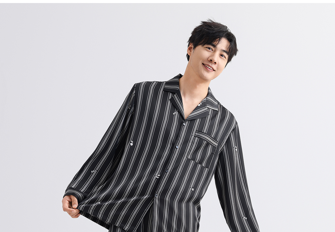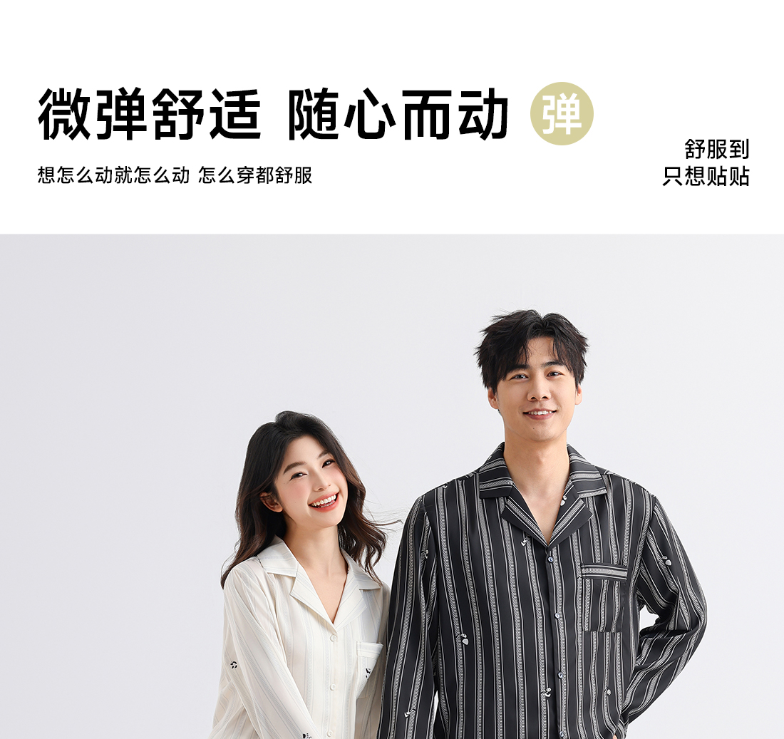 美季美优睡衣男女士情侣春秋2025新款夏仿丝绸条纹长袖家居服套装
