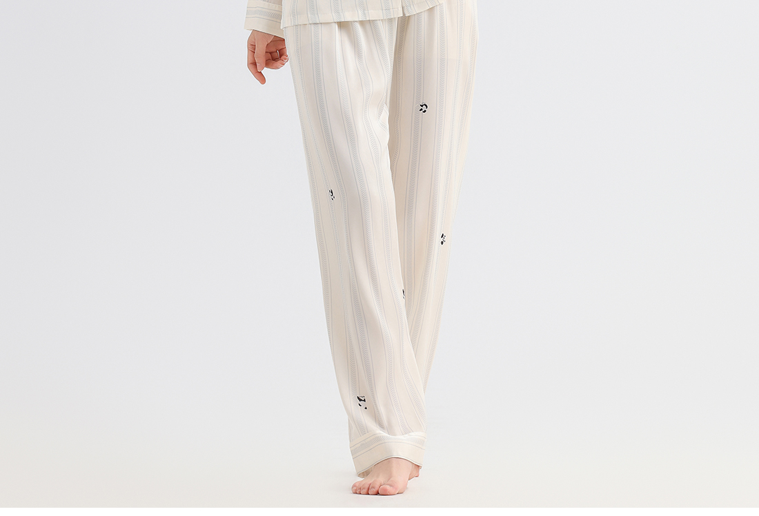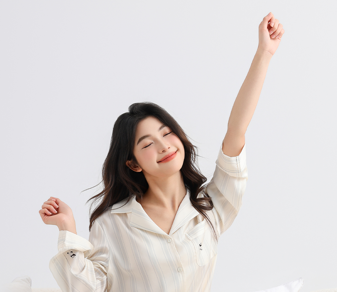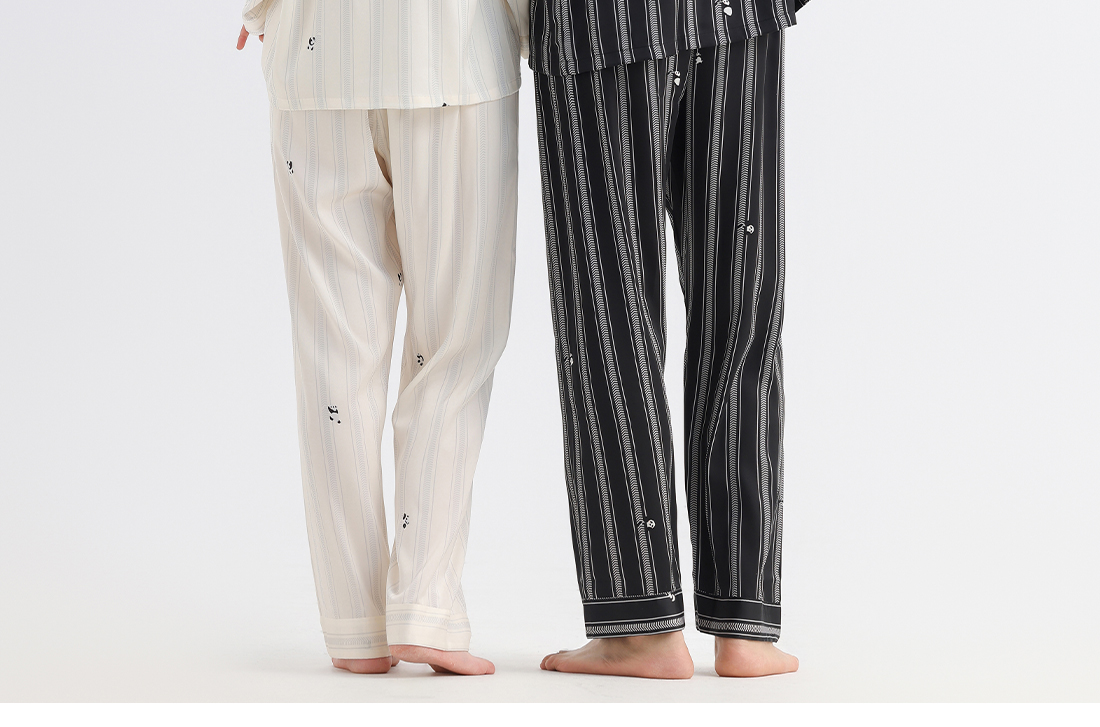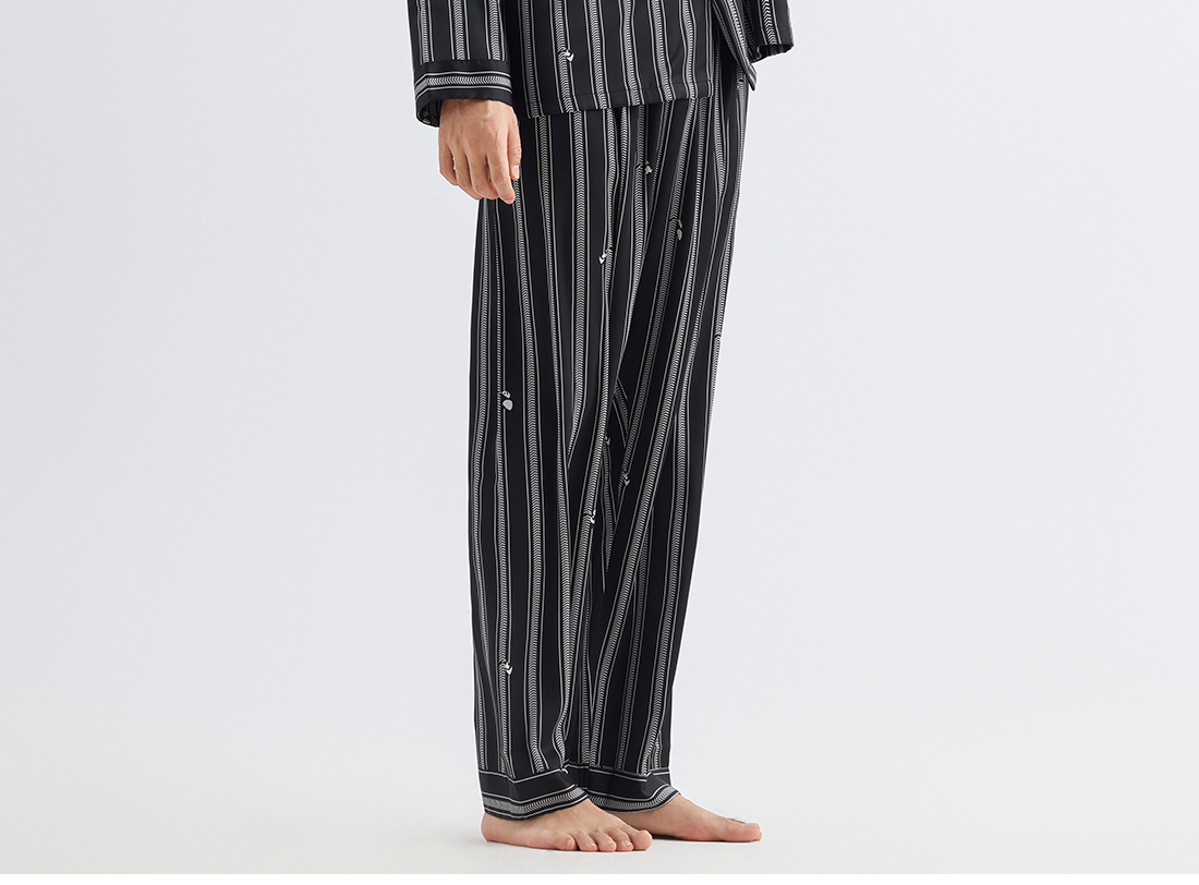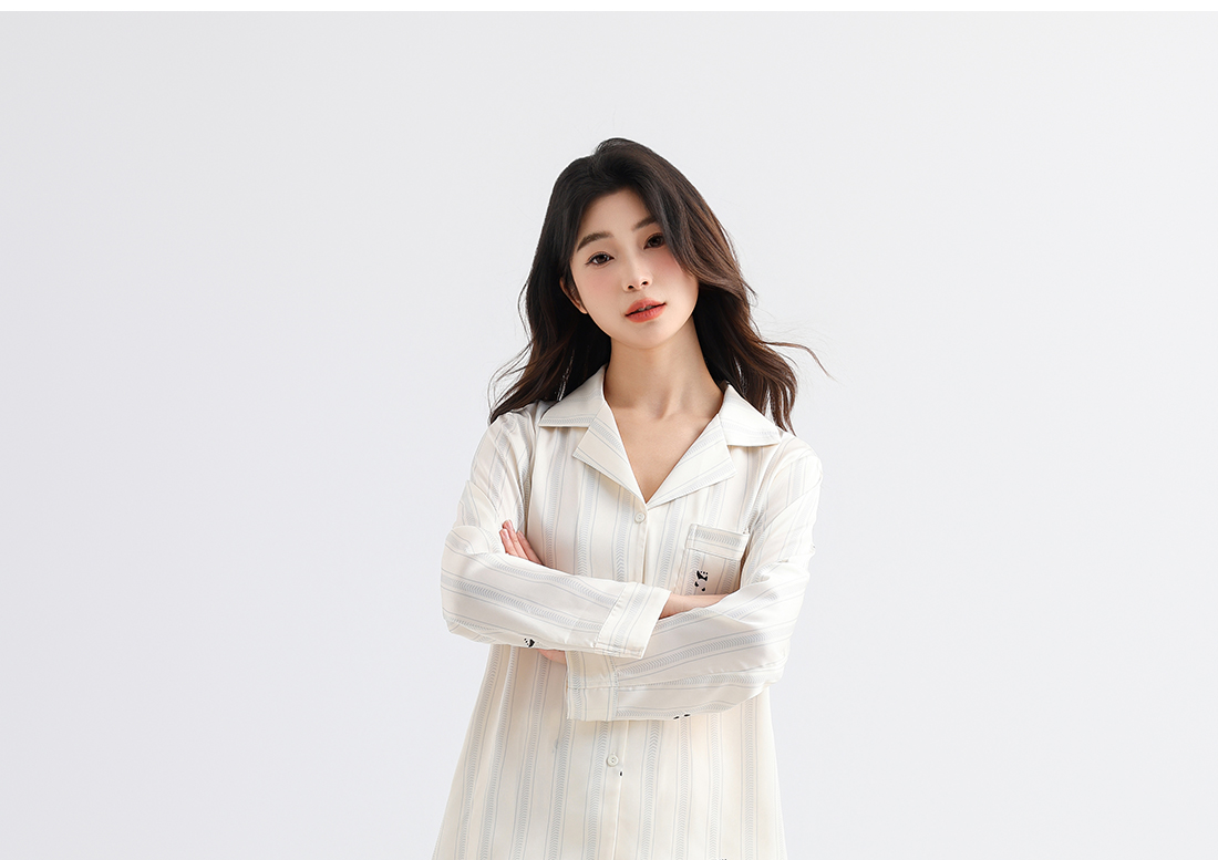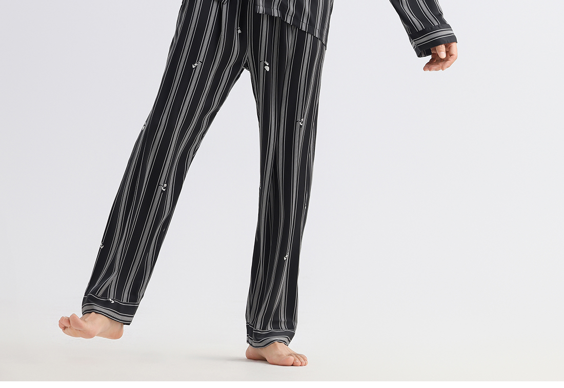美季美优睡衣男女士情侣春秋2025新款夏仿丝绸条纹长袖家居服套装