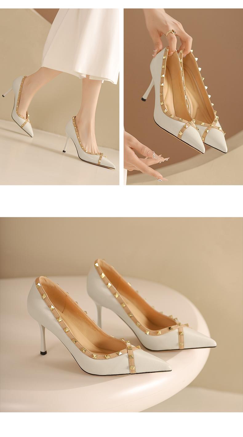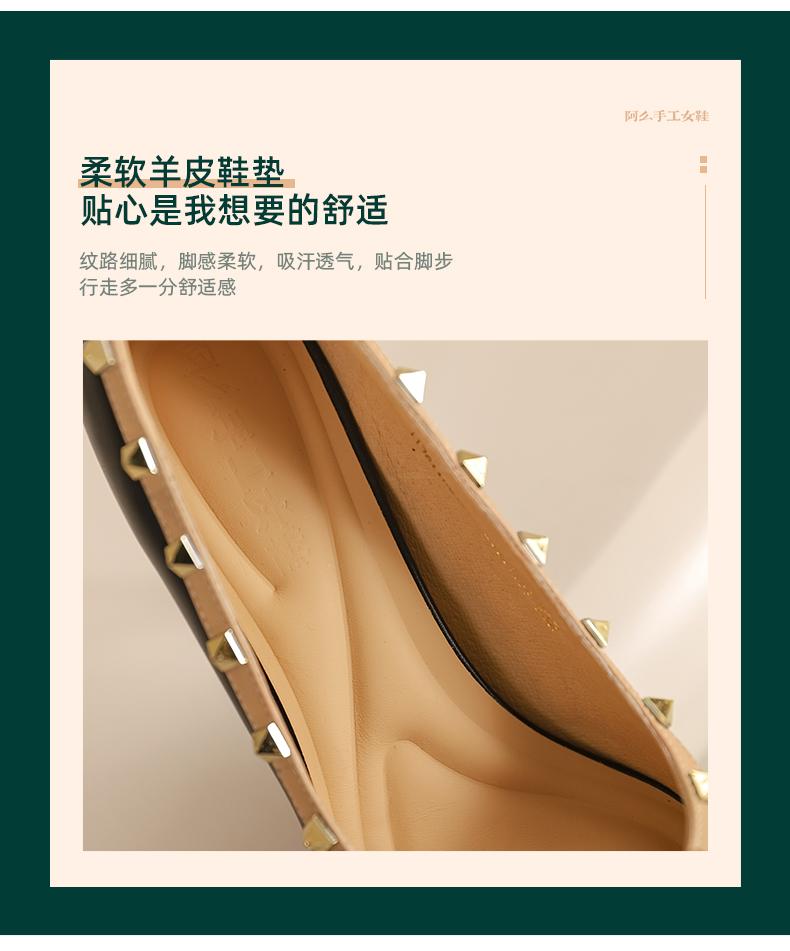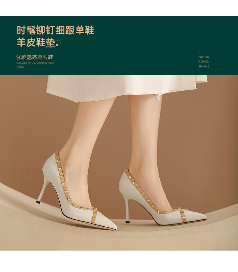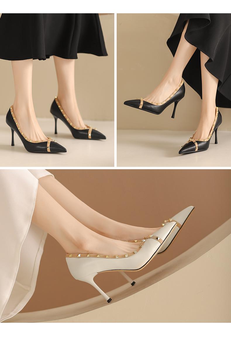 阿么手工女鞋气质欧美风尖头铆钉细跟高跟鞋8.5CCM优雅百搭单鞋女