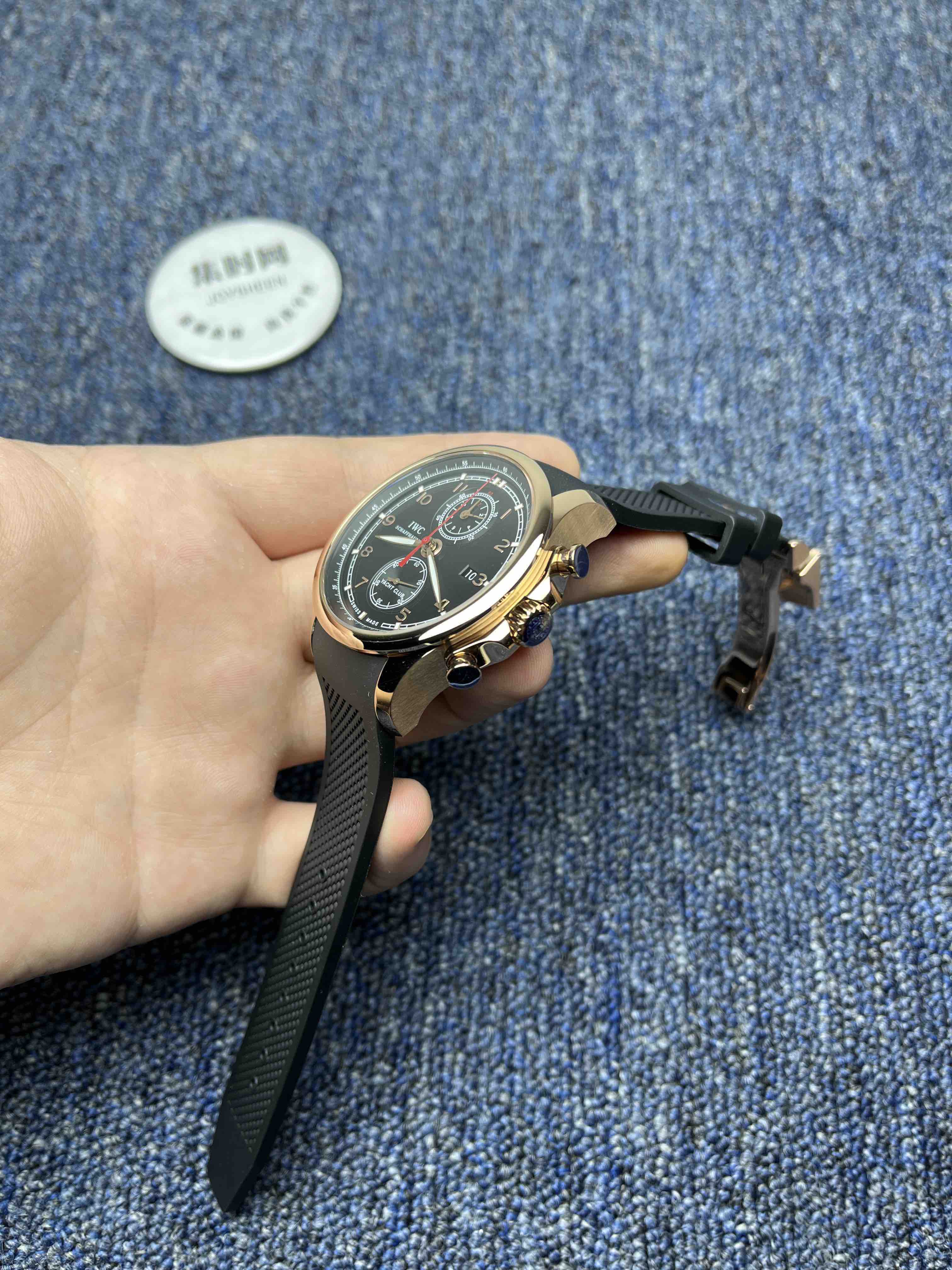 IWC万国 葡萄牙计时系列 男士腕表 搭载7750改Cal.89361计时全自动机械机芯 夜光显示 双面凸起蓝宝石水晶玻璃 表壳CNC工艺多道工序打磨抛光,线条清晰流畅 表带升级进口橡胶表带 无异味 不沾尘 不发白 升级表扣为原厂地球长扣 字面校准 光泽 媲美正品表盘直径:45mmx14.5mm