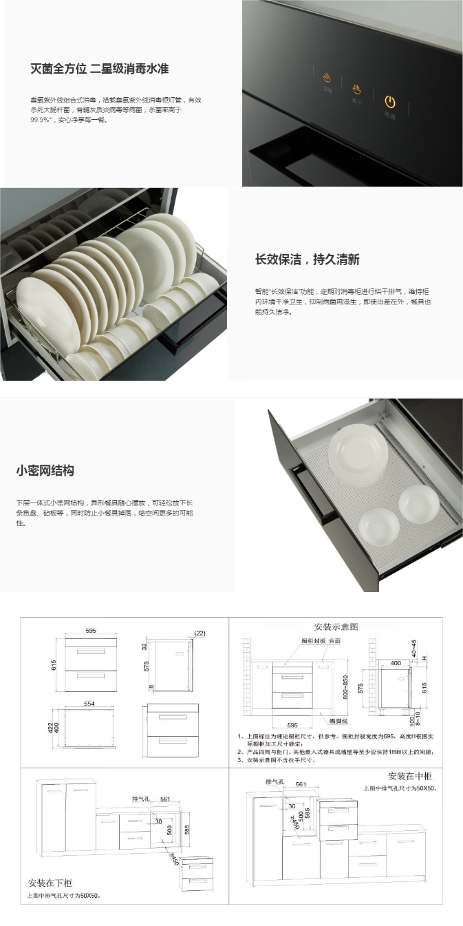 方太消毒柜(510381) 二星消毒 健康耐用 安心净享每一餐 ZTD100J-J36 二星级消毒 长效保洁定期排气 定期烘干