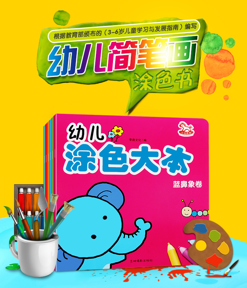 全6册幼儿简笔画涂色本1宝宝涂色书 0-3岁入门简单6册简笔画大全儿童涂色书启蒙2-3岁幼儿画册填色图画书籍早教幼儿园涂色本绘画书