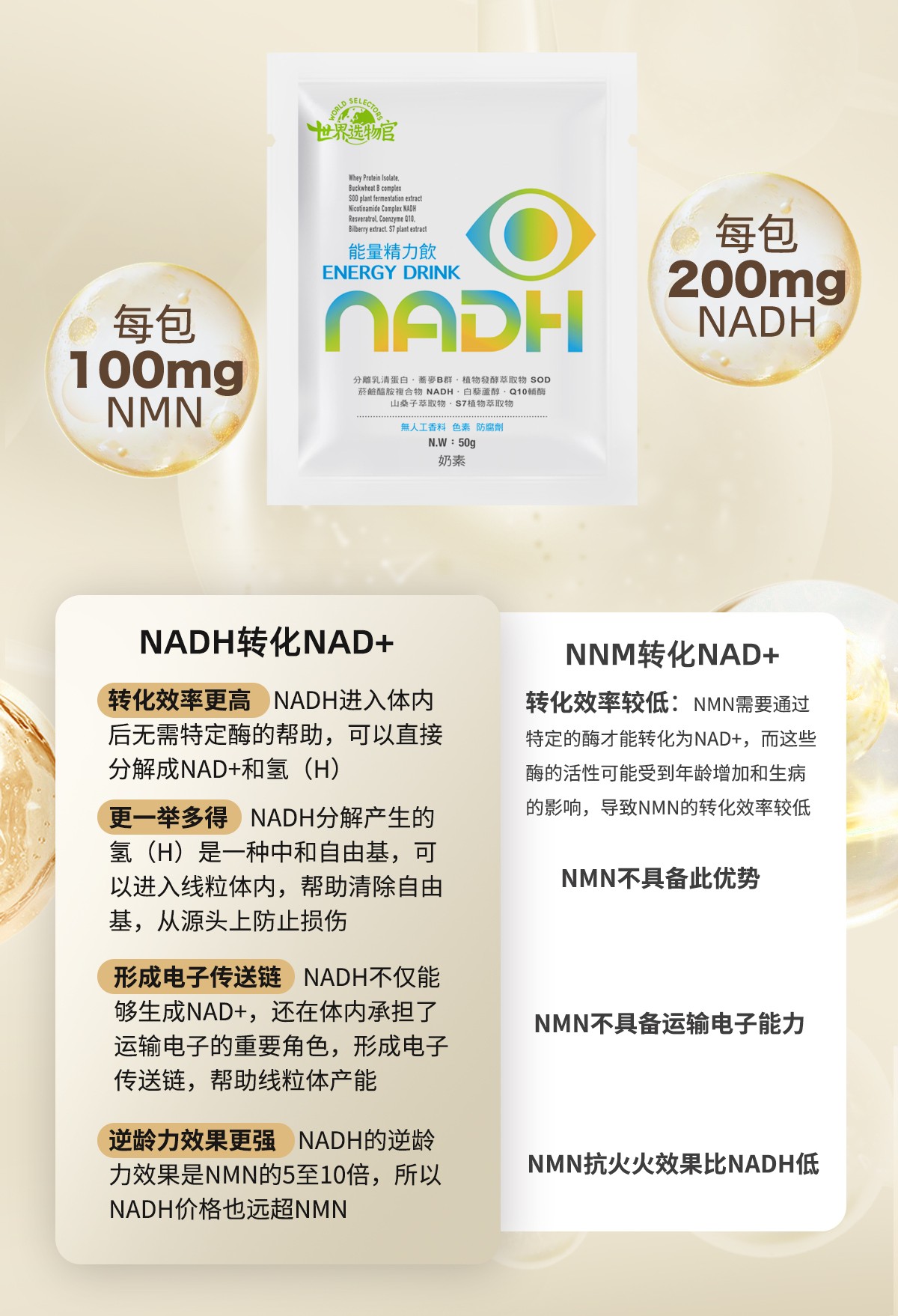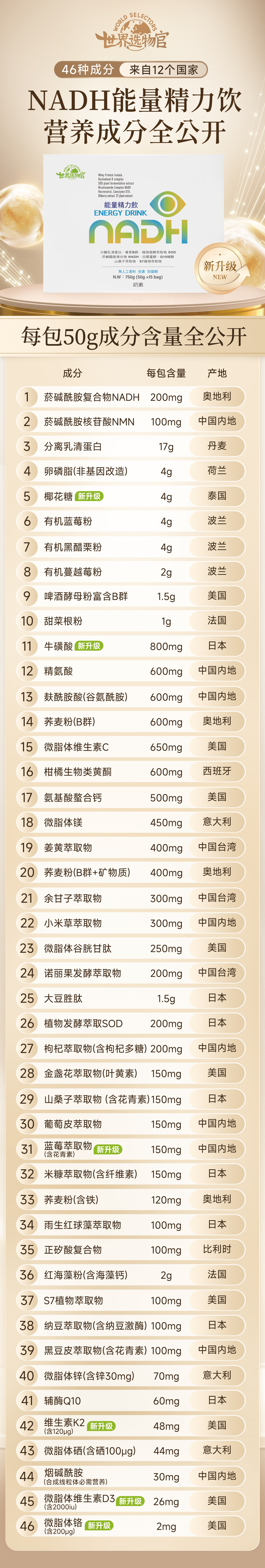 NADH能量饮1个月体验装(NADH1盒+β葡聚糖乳清蛋白粉1盒)