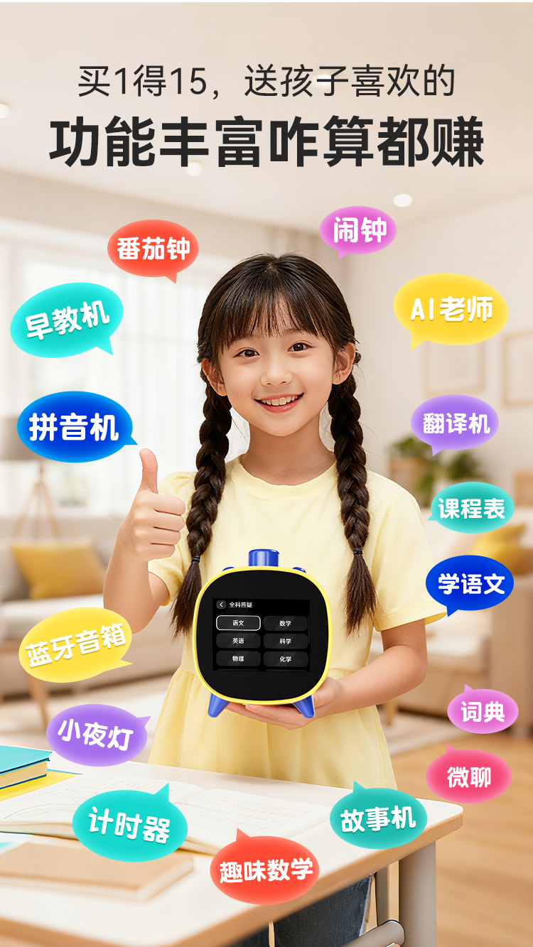 【孩子的专属闹钟+学习机】2026新年生日礼物 Ai大模型智能闹钟养成自律小学霸 女孩儿童男孩10岁电子智能闹钟学生专用起床神器
