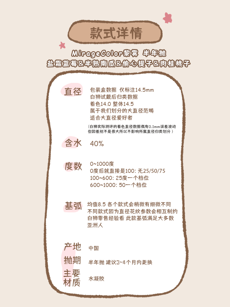 MirageColor黎雾旗下 | 盐霜蓝莓&半熟南瓜&偷心提子&肉桂桃子 14.5mm白狮参考着色大直径 半年抛
