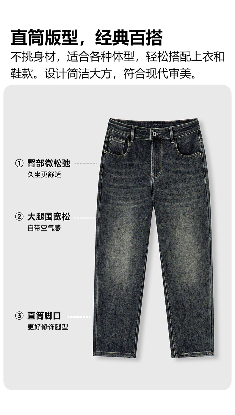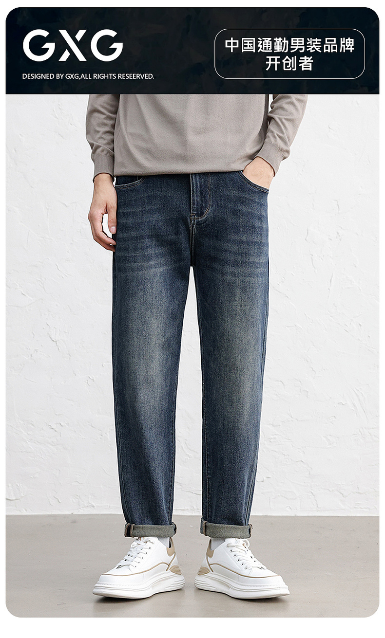 GXG男装25秋季时尚简约复古水洗日常通勤舒适直筒男士牛仔长裤K&C