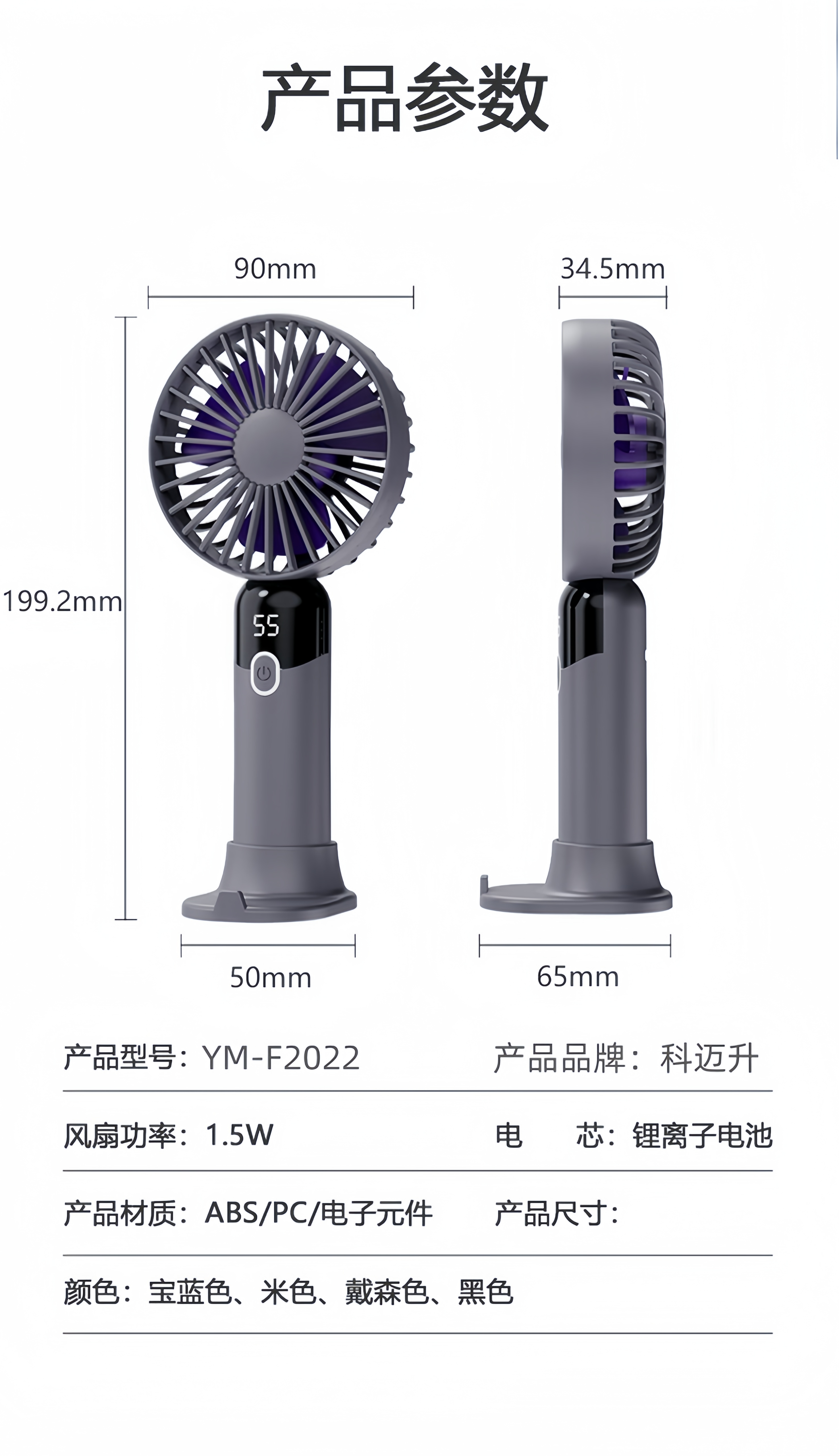 科迈升 数显手持桌面小风扇YM-F2022
