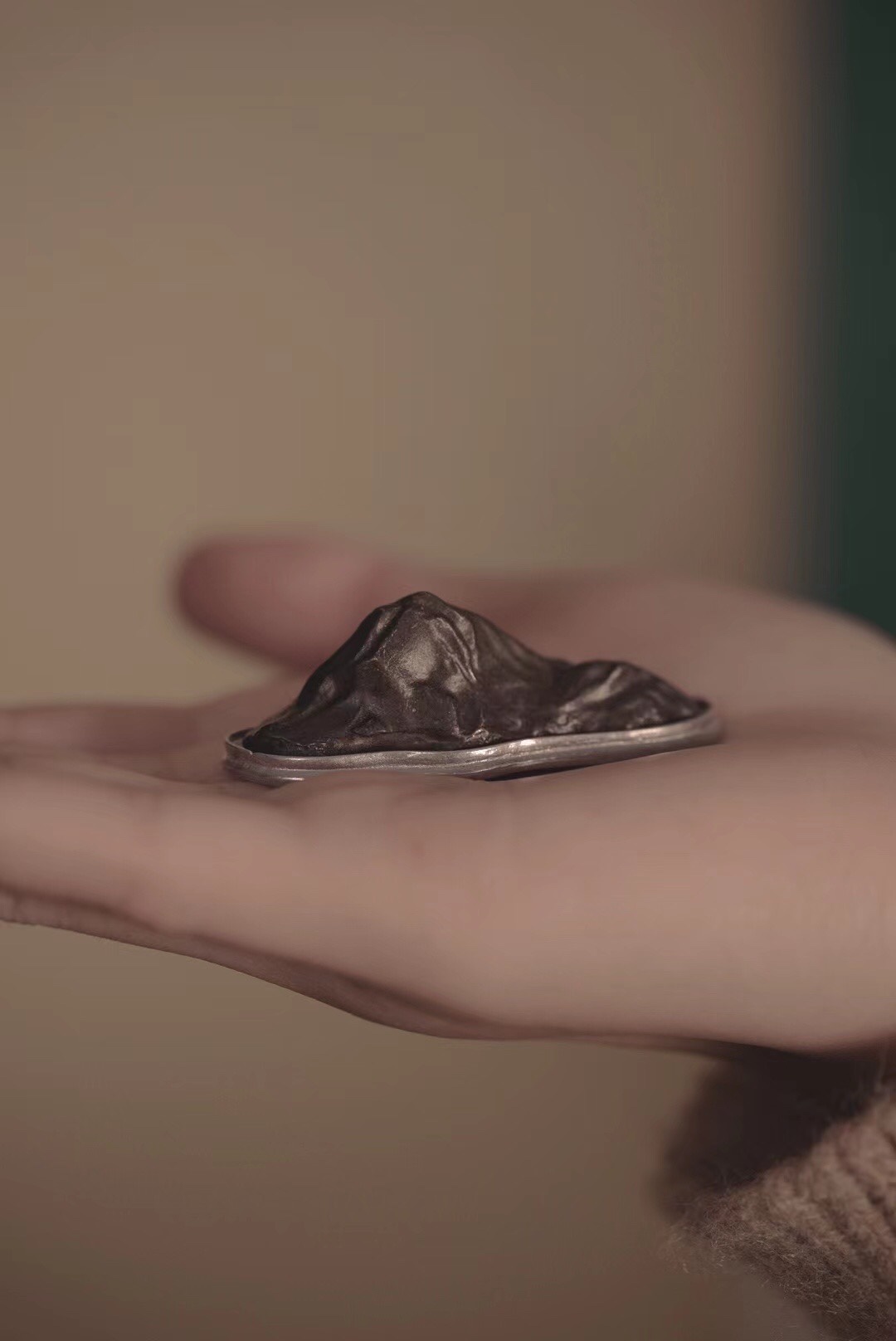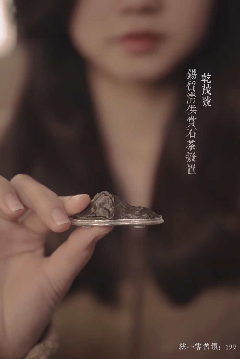 百年制锡 乾茂号|锡制清供赏石搁架 长 5.4 宽 2 高 2 全锡山石 茶道配件摆件