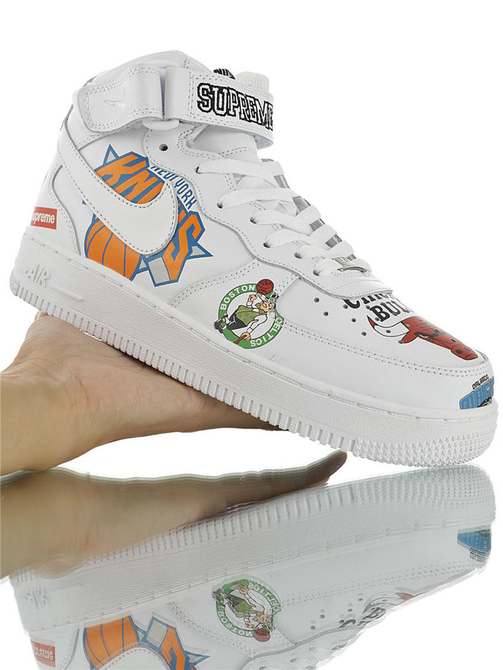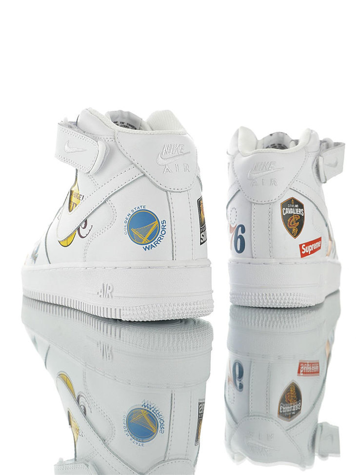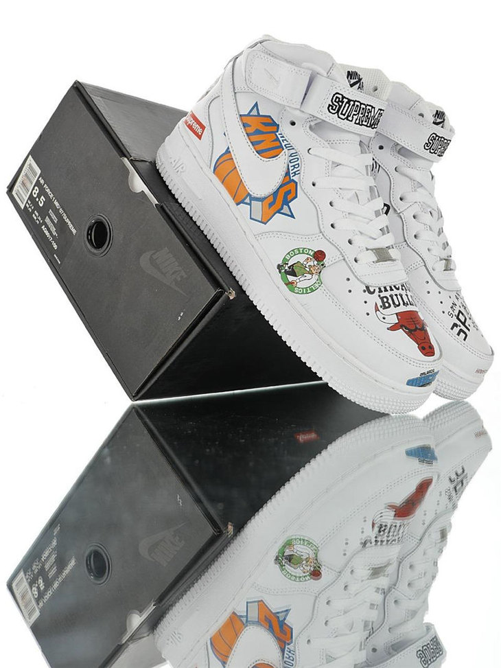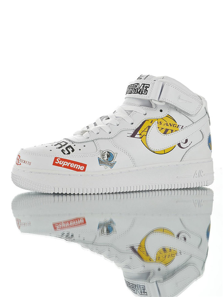 耐克Supreme x NBA x Air Force 1 Mid 07 “White” 重磅三方联名 经典百搭中帮休闲运动板鞋 NBA黑皮LOGO NBA白皮LOGO
