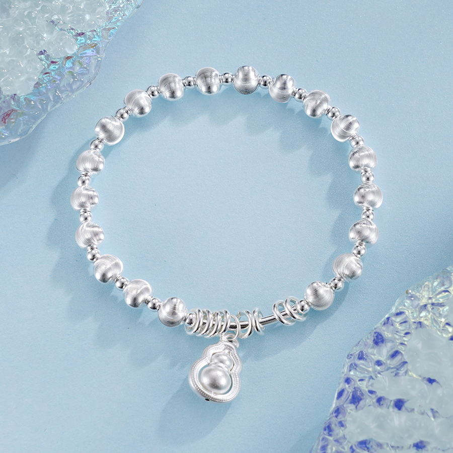【寓意】:细腻圆润的银珠手串,点缀着葫芦坠饰,宛若幸运护身符,让福禄美好统统流向自己。