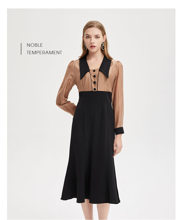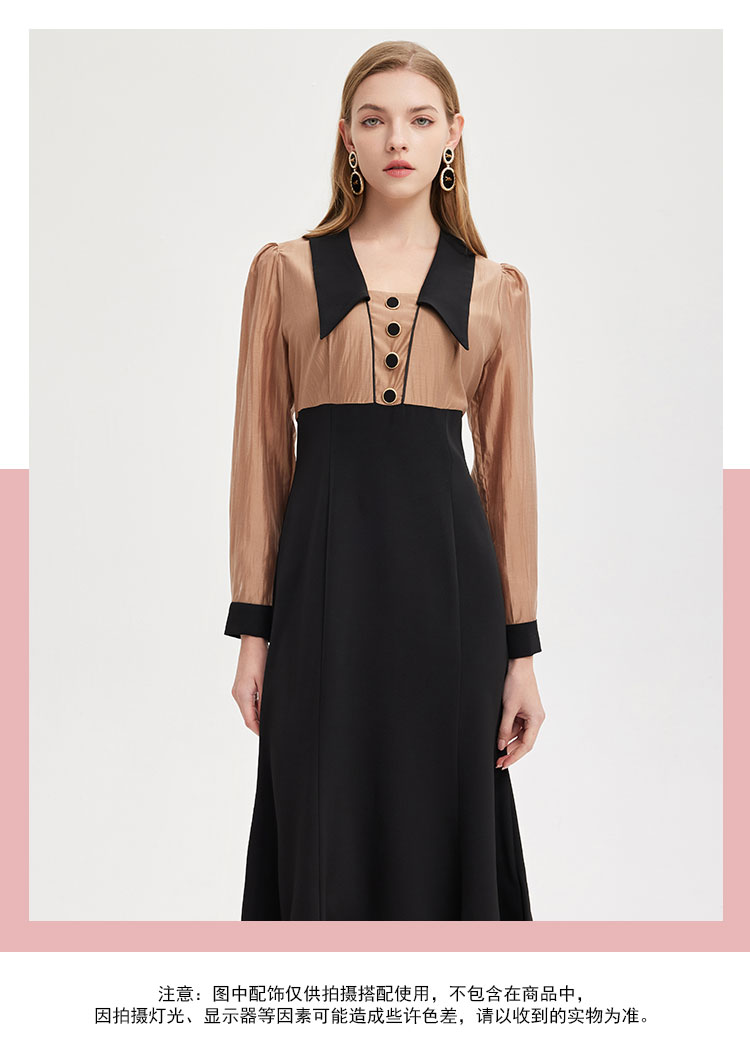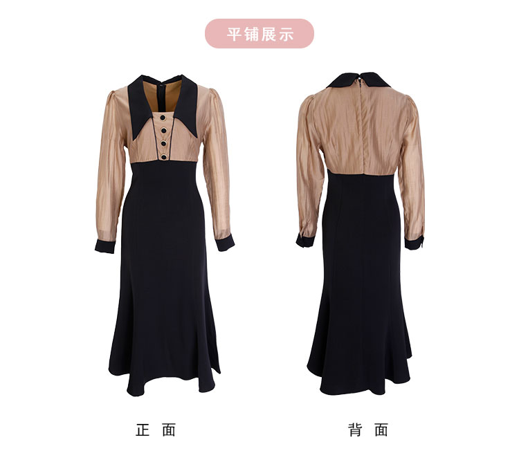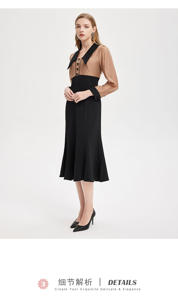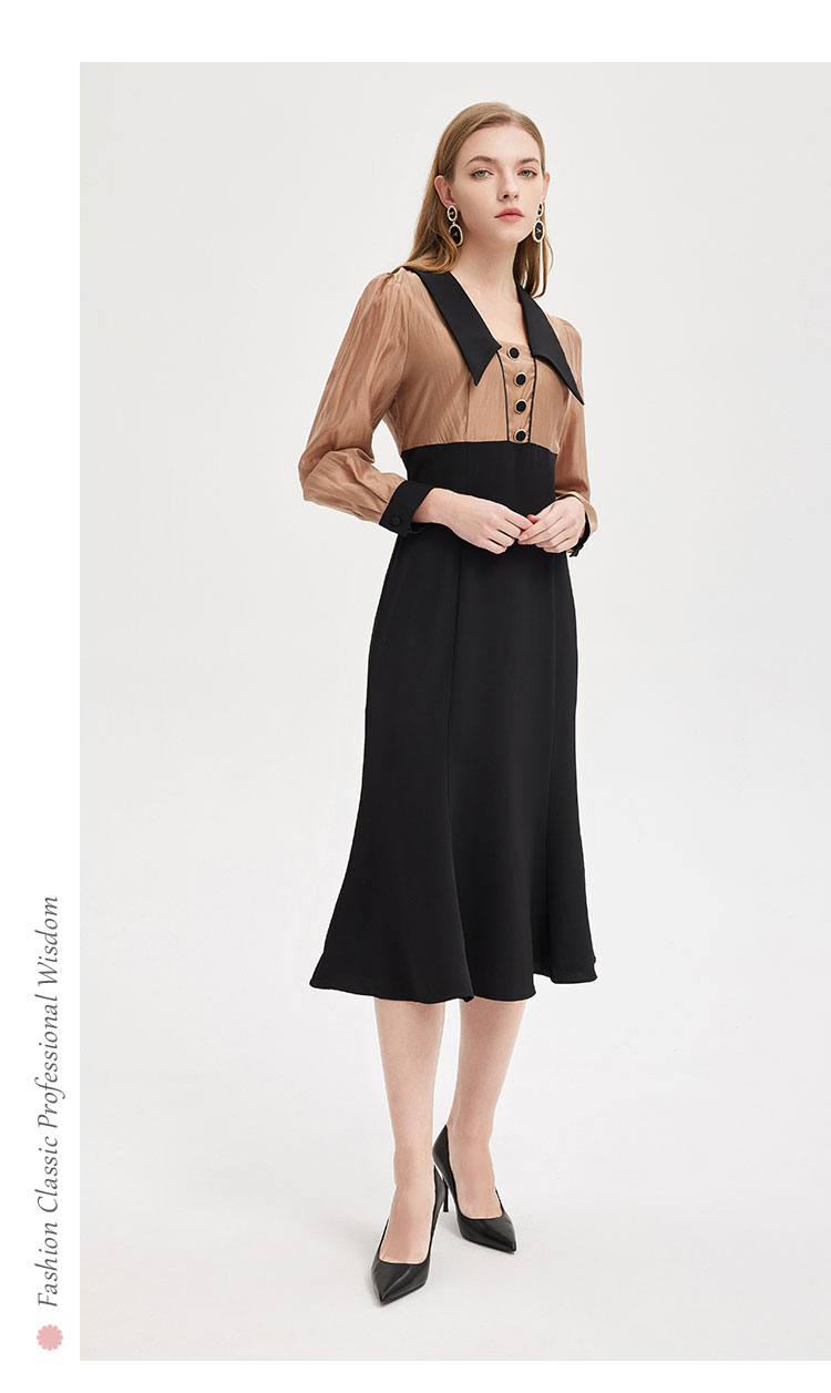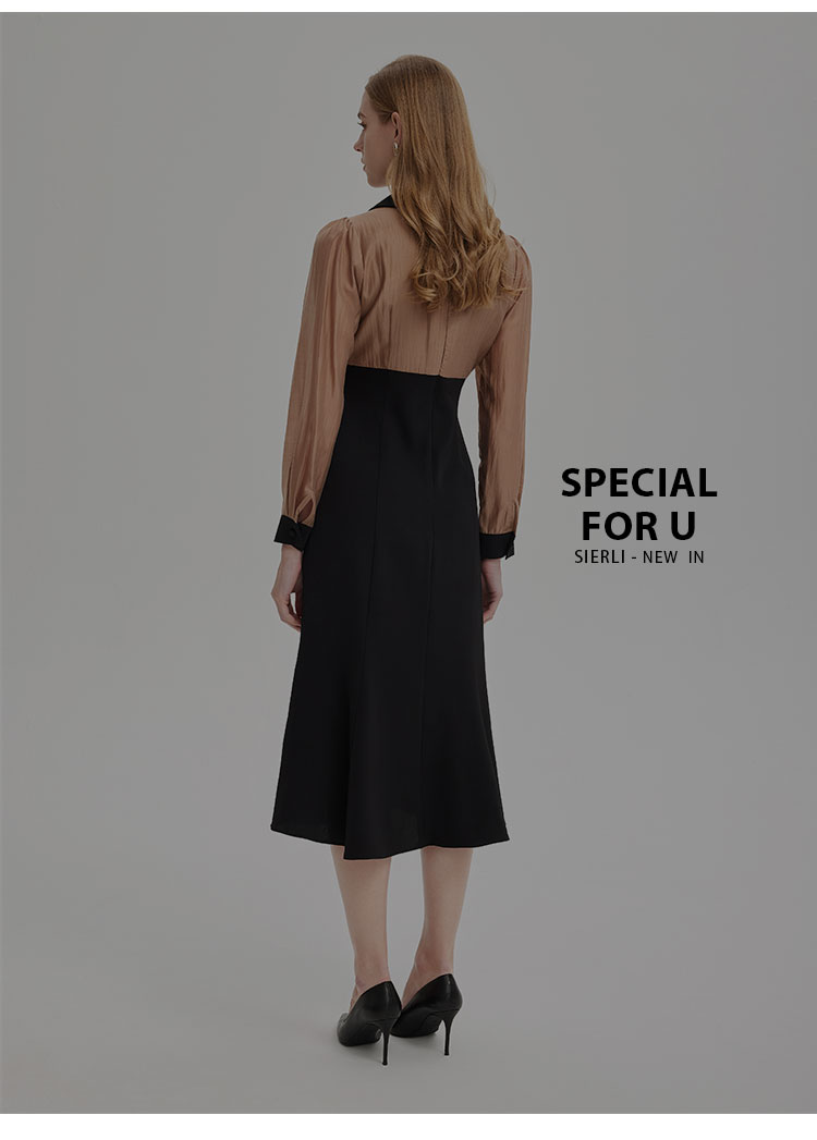 PF828斯尔丽24新款撞色尖领办公室白领气质优雅连衣裙