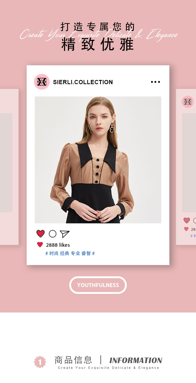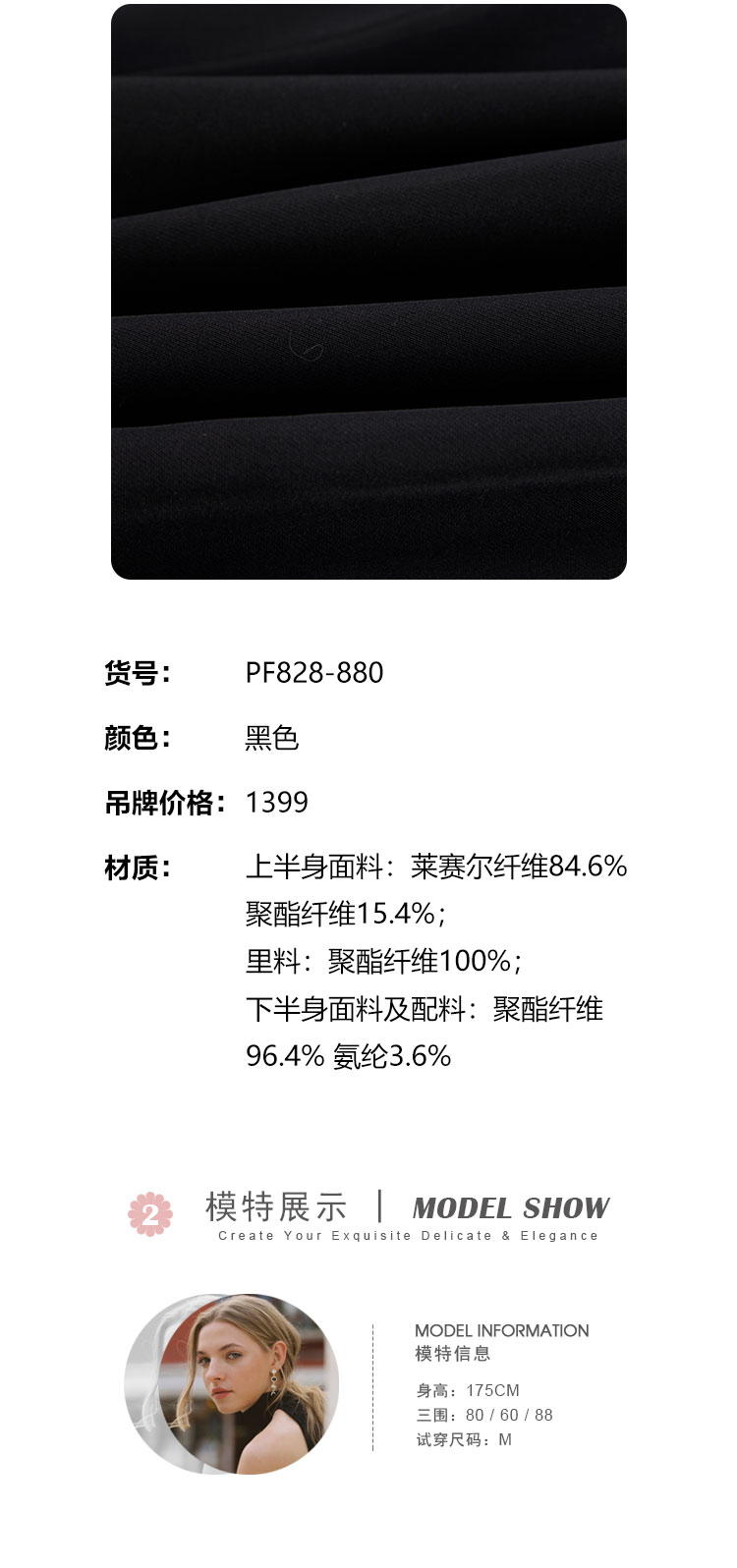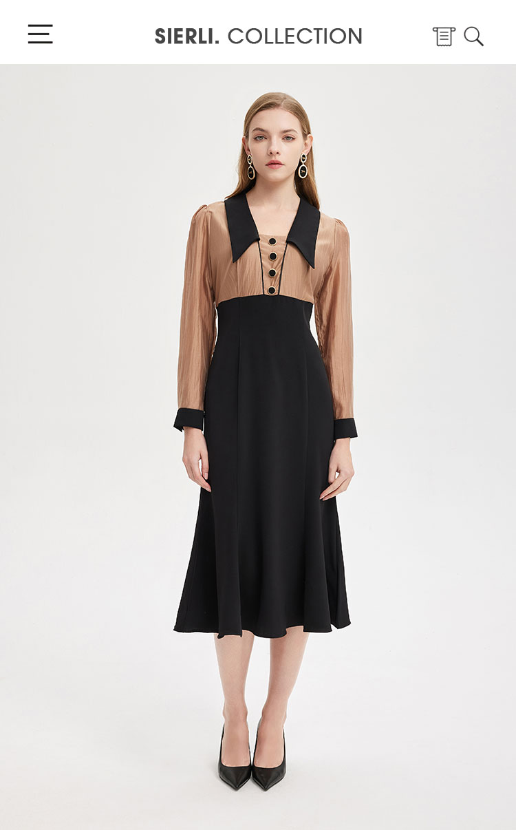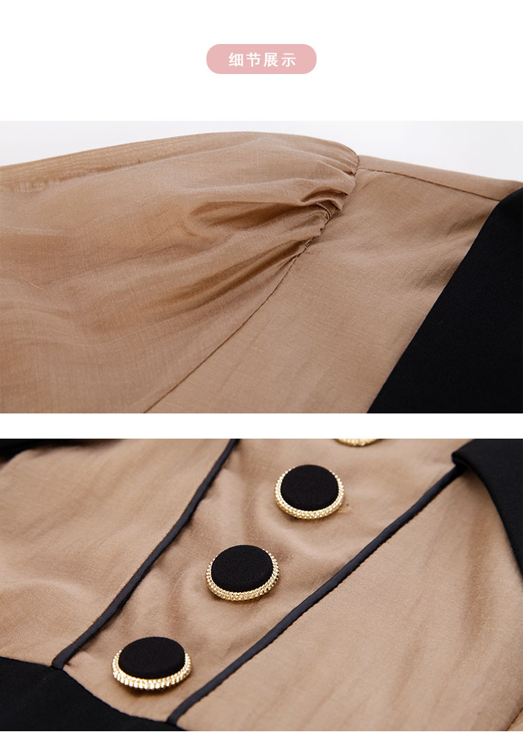 PF828斯尔丽24新款撞色尖领办公室白领气质优雅连衣裙