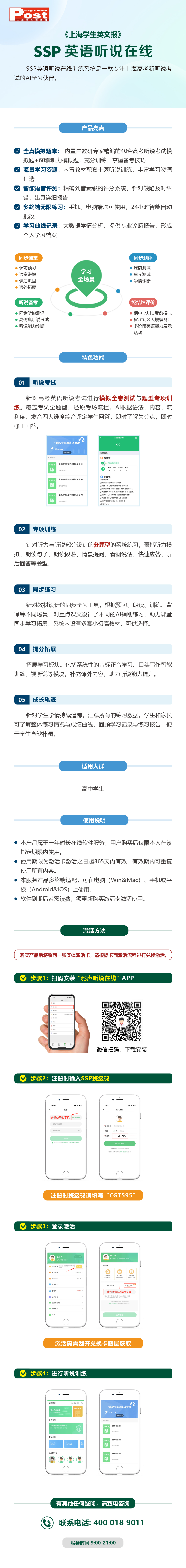 《SSP英语听说在线》训练卡激活码一旦刮开,概不退换!