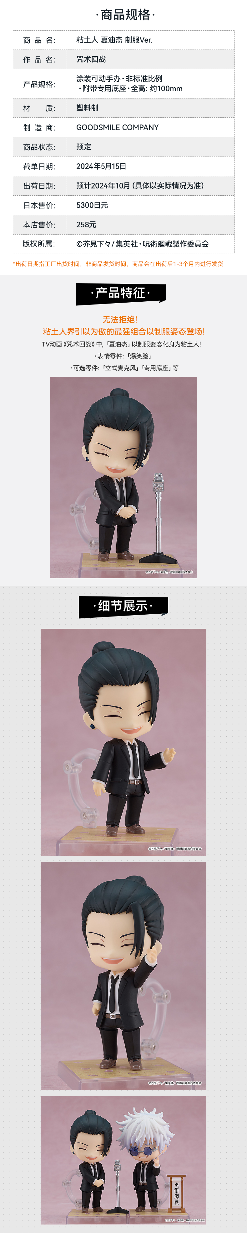 【GSC现货】粘土人 夏油杰 制服Ver. 咒术回战