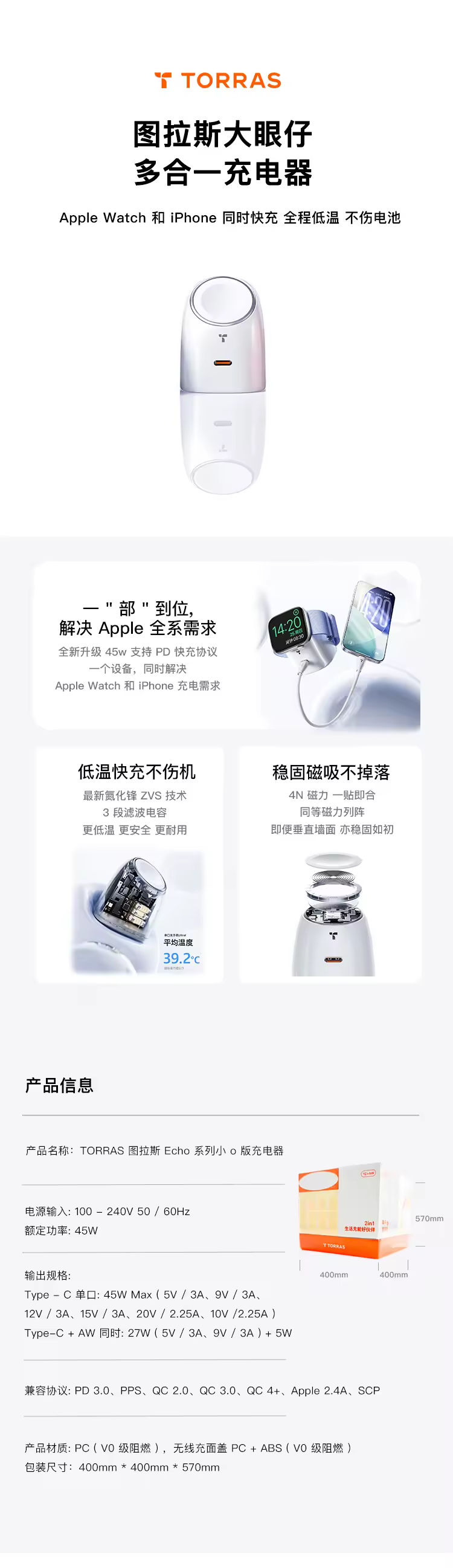TORRAS图拉斯 Echo 系列 小 o 版 45W 二合一充电器