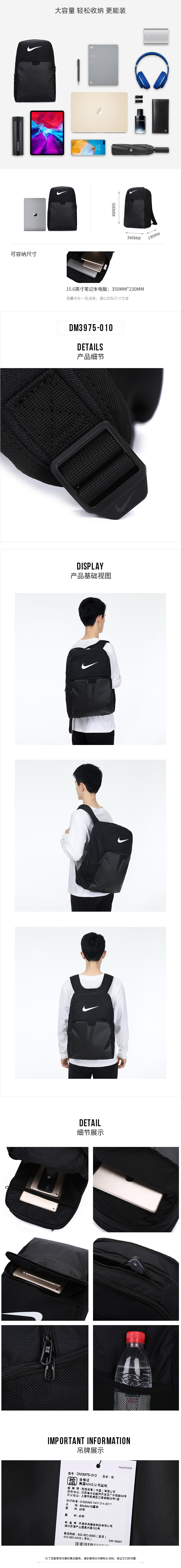 耐克NIKE 男女通款 运动双肩包 背包 书包 旅行包 电脑包 BRASILIA 9.5 休闲包 DM3975-010