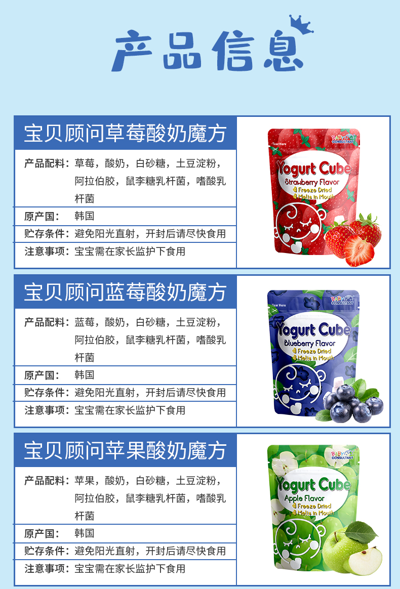 宝贝顾问韩国进口酸奶溶豆魔方儿童零食宝宝辅食益生菌5口味组合