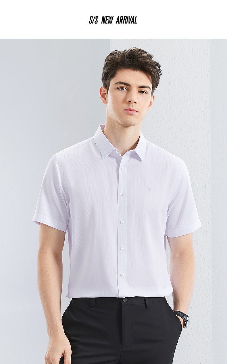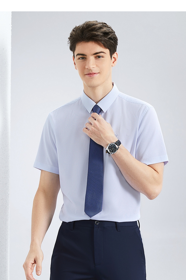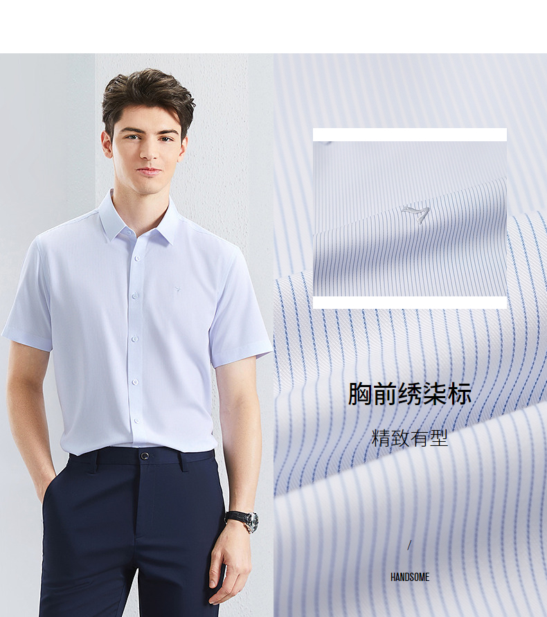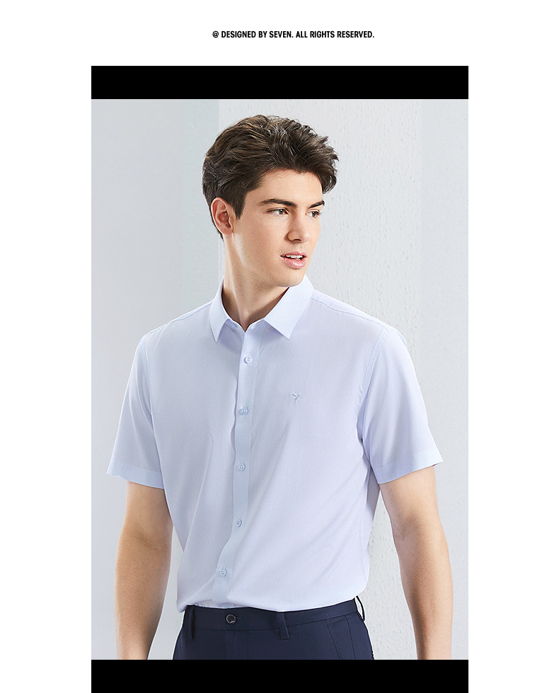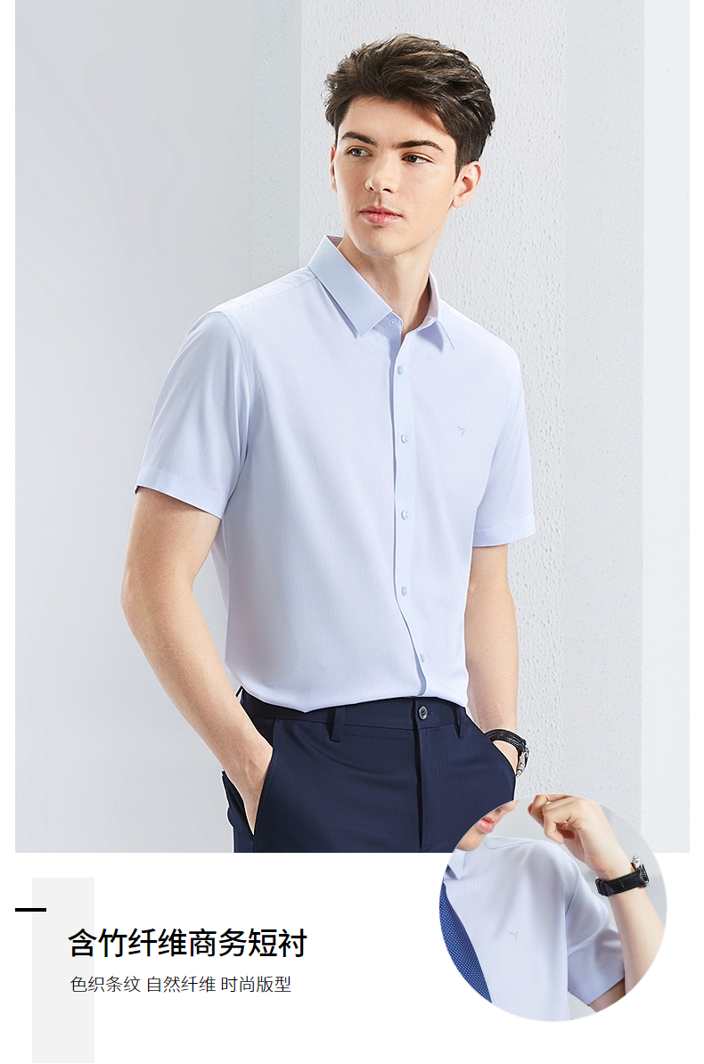【含竹纤维】柒牌男士短袖衬衫夏季新款商务百搭色织条纹休闲衬衣 126A70430