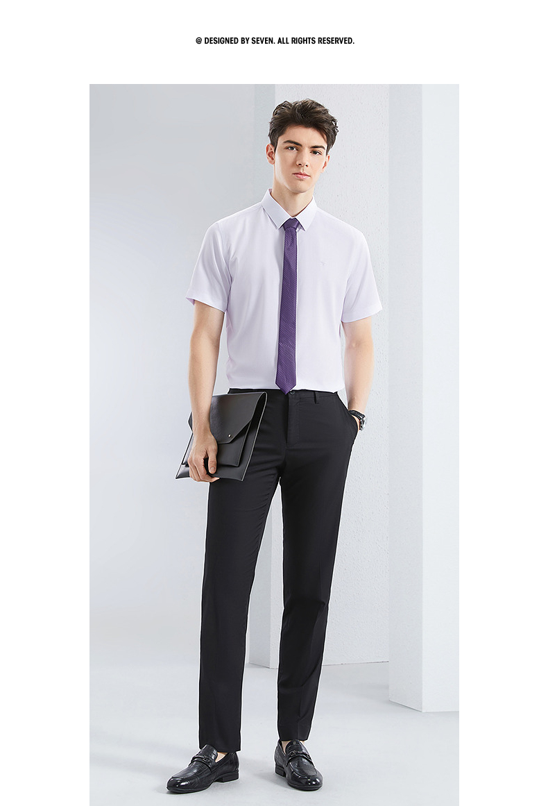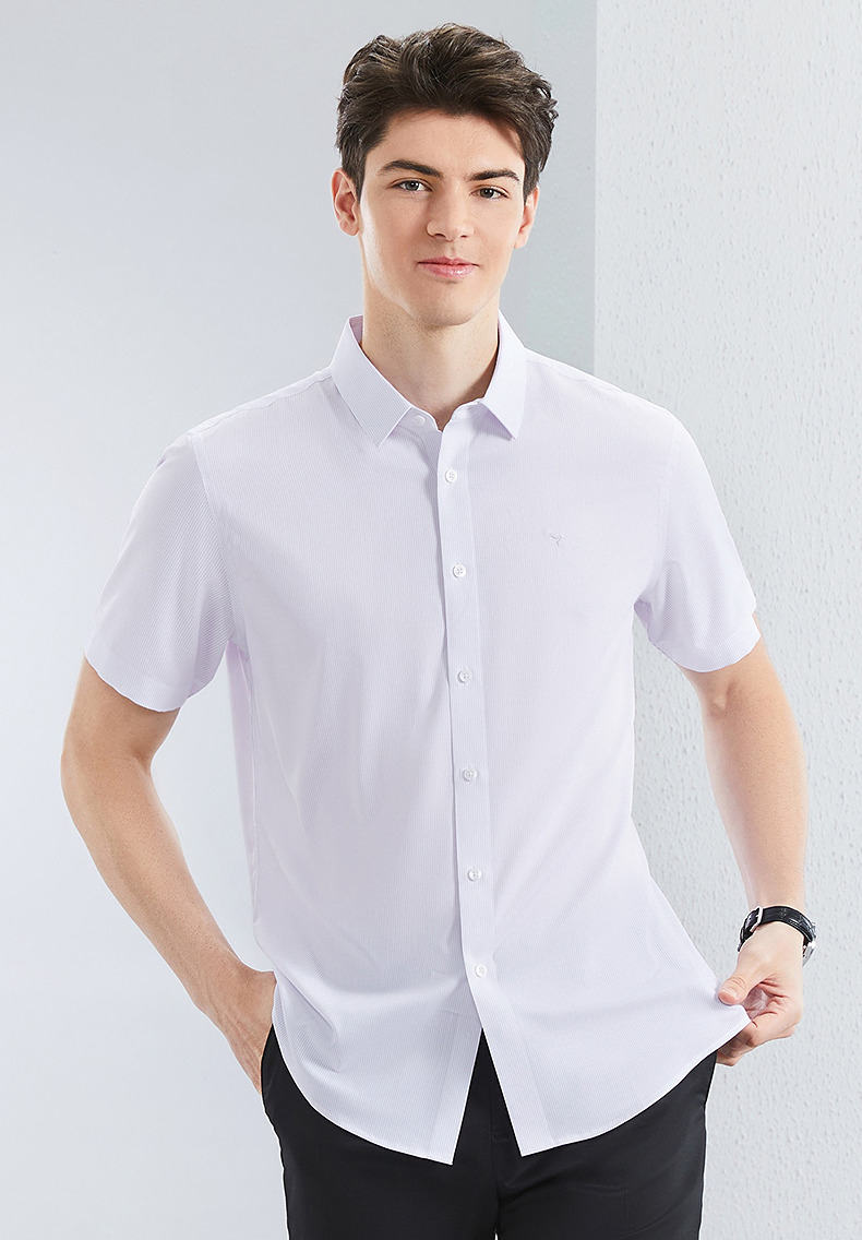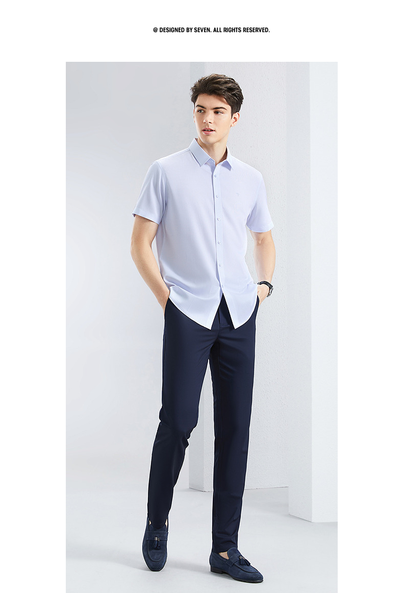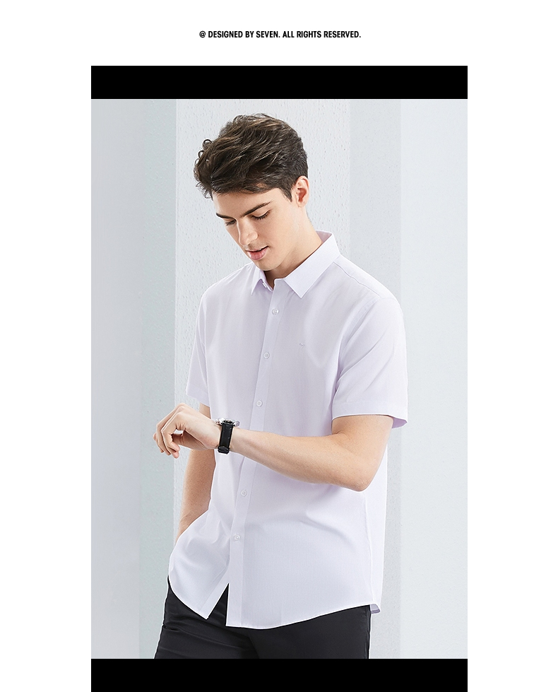 【含竹纤维】柒牌男士短袖衬衫夏季新款商务百搭色织条纹休闲衬衣 126A70430