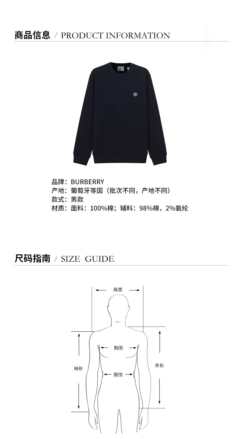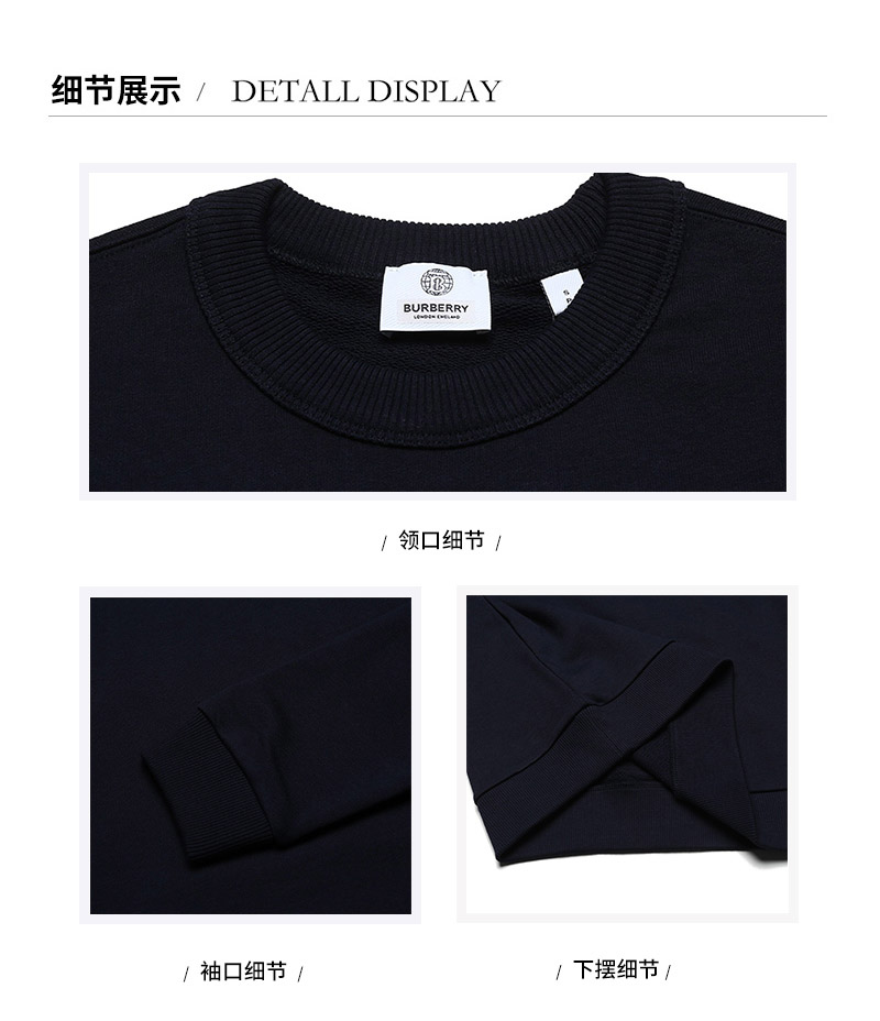 BURBERRY/博柏利【22春夏新款】男款棉质圆领长袖卫衣运动衫专属标识图案 80432381