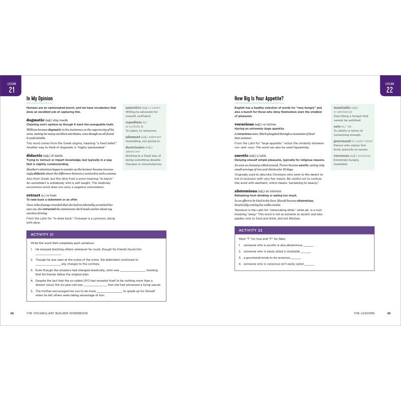 Increase your vocabulary and become a better reader, writer, and test-taker with The Vocabulary Builder Workbook.