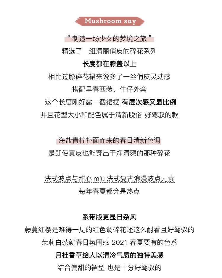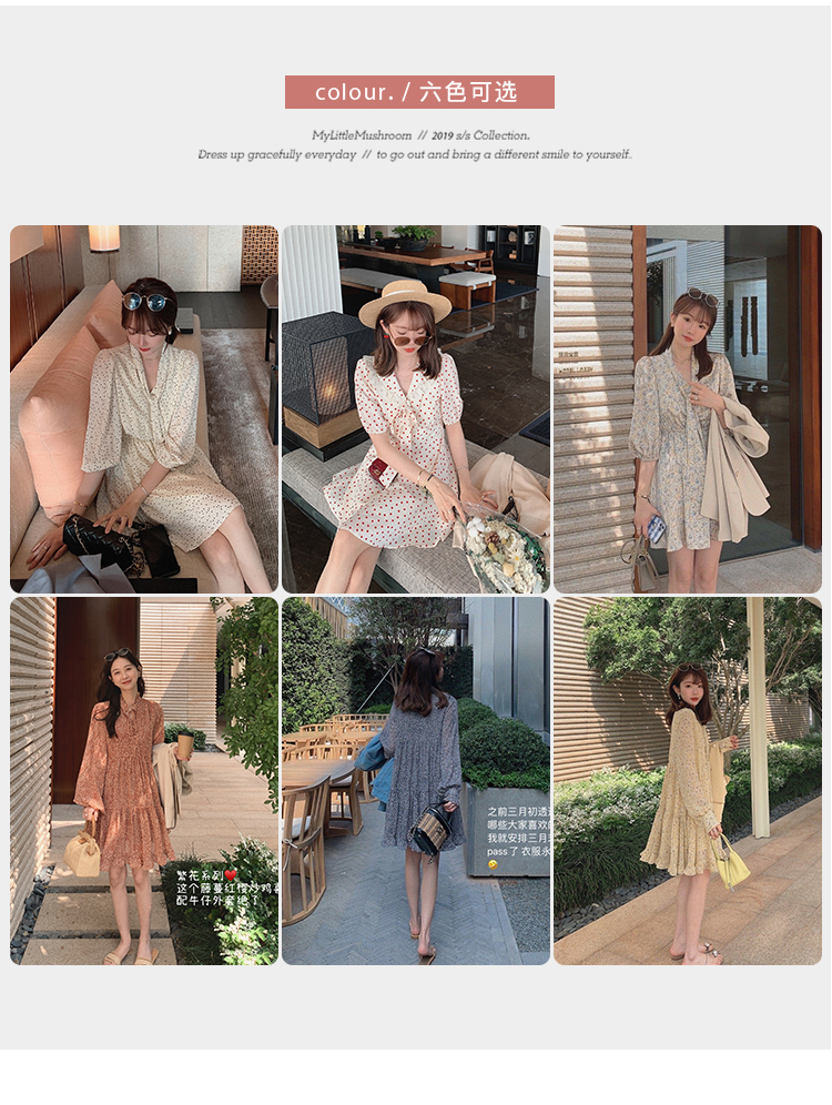 【金蘑菇菇四月繁花】多版本!清丽碎花裙组法式波点连衣裙渡假裙