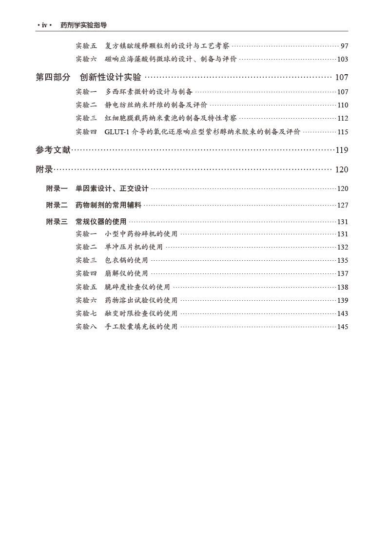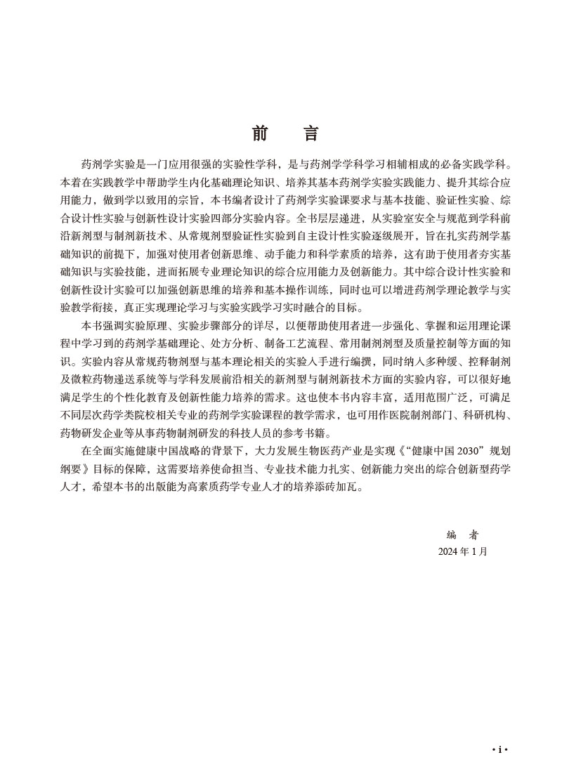 《药剂学实验指导》是与药剂学理论学习相辅相成的必备实践用书。本书共分为四部分,包括药剂学实验课要求与基本技能、验证性实验、综合设计性实验、创新性设计实验。书末还有相关知识附录。本书从药剂学基础知识到学科前沿的新剂型与制剂新技术均有涵盖,在扎实基本实验技能的基础上,培养学生创新思维、动手能力和科学素质。
