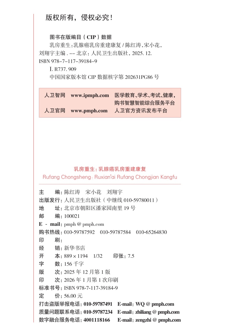 乳房重生:乳腺癌乳房重建康复 陈红涛 宋小花 刘翔宇 主编 科普 揭开乳腺癌的秘密 疾病防治 肿瘤学 9787117391849人民卫生出版社