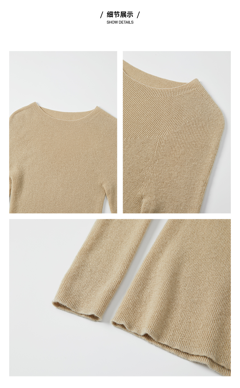 HIDEMI色织格纹厚款针织中高领弹力打底上衣